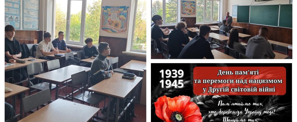 Під час заходу учні ознайомилися з трагічними сторінками історії Другої світової війни, обговорили роль українців у боротьбі проти нацизму. Вчитель історії акцентував увагу на важливості збереження пам’яті про ті події, формуванні поваги до подвигу воїнів та цивільного населення. Учні переглядали тематичні матеріали, слухали розповіді про особисті історії героїв, брали участь у обговоренні значення миру у сучасному світі.