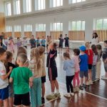 10 день пришкільного табору «Усмішка» розпочався на шикуванні, ознайомленням із планом роботи на день та фізичною активністю з Андрієм БОВТОМ, інструктором з фізкультури.