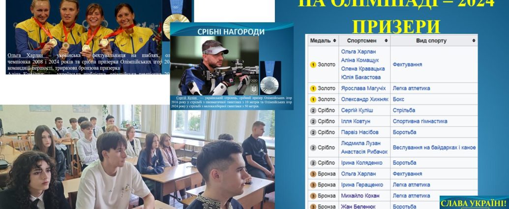 Видатні спортсмени та олімпійські чемпіони України є прикладом мужності, праці та таланту. Серед них – легкоатлет Сергій Бубка, гімнастка Лілія Подкопаєва, борчиня Ірина Мерлені, плавчиня Яна Клочкова, фехтувальниця Ольга Харлан та багато інших. Їхні перемоги стали символом незламності й віри у власні сили. Досягнення українських олімпійців надихають молодь займатися спортом, розвивати витривалість, силу волі та любов до своєї країни.
