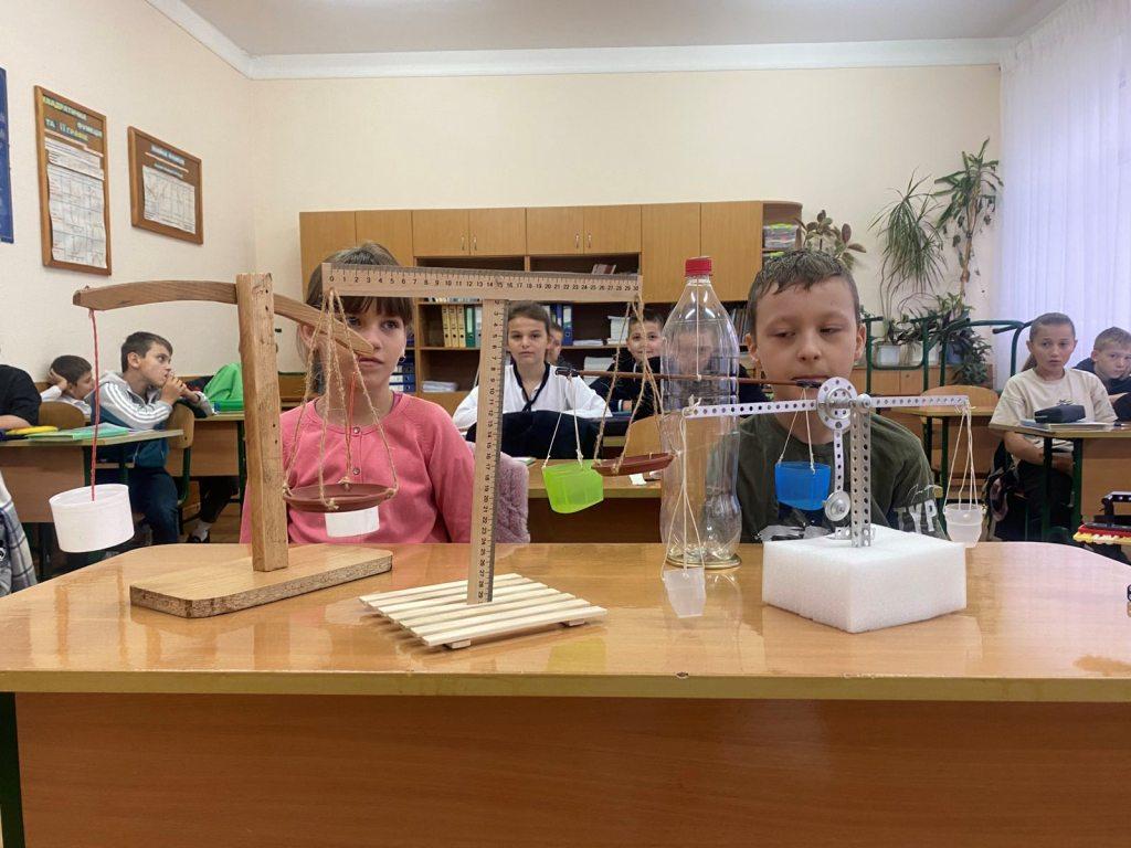 На уроці курсу «Пізнаємо природу» (вчитель Росина ОДАЖІУ) п’ятикласники досліджували тему «Вимірювальні прилади». Після знайомства з різними видами приладів для вимірювання учні взялися за творче завдання – виготовлення власних терезів. Це дало змогу не лише зрозуміти принципи роботи простих вимірювальних приладів, а й відчути себе маленькими винахідниками.