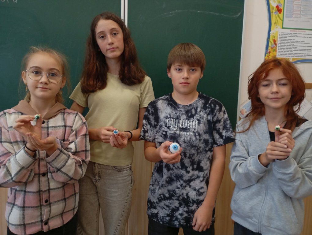 Практична частина уроку пройшла жваво та творчо. Учні мали змогу обрати завдання за інтересом: створити модель роботи ока людини з підручних матеріалів або ж скласти пам’ятку «Як зберегти зір», де вказали основні правила гігієни зору, важливість освітлення під час навчання, відпочинку для очей та обмеження часу перед екранами гаджетів.