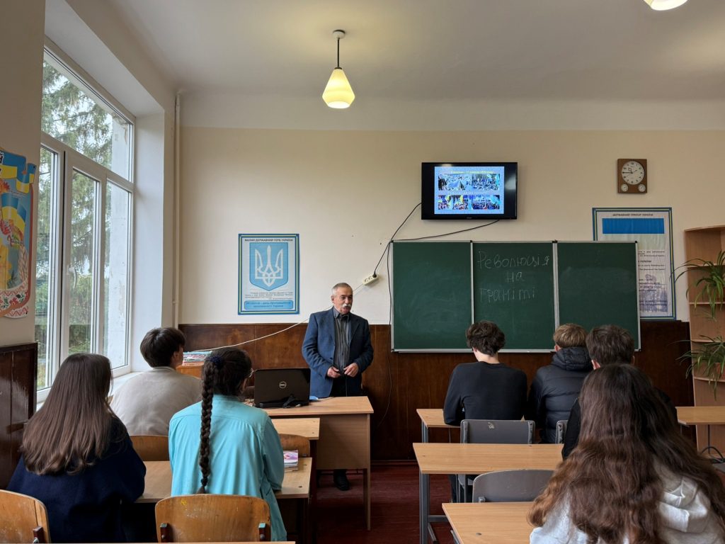 Метою заходів, проведених вчителями історії Василем ГОРБАТЮКОМ та Галиною ПИВНЮК було формування у здобувачів освіти патріотизму, громадянської свідомості, поваги до історичного минулого України, усвідомлення значення мирних форм протесту та цінності демократичних свобод.