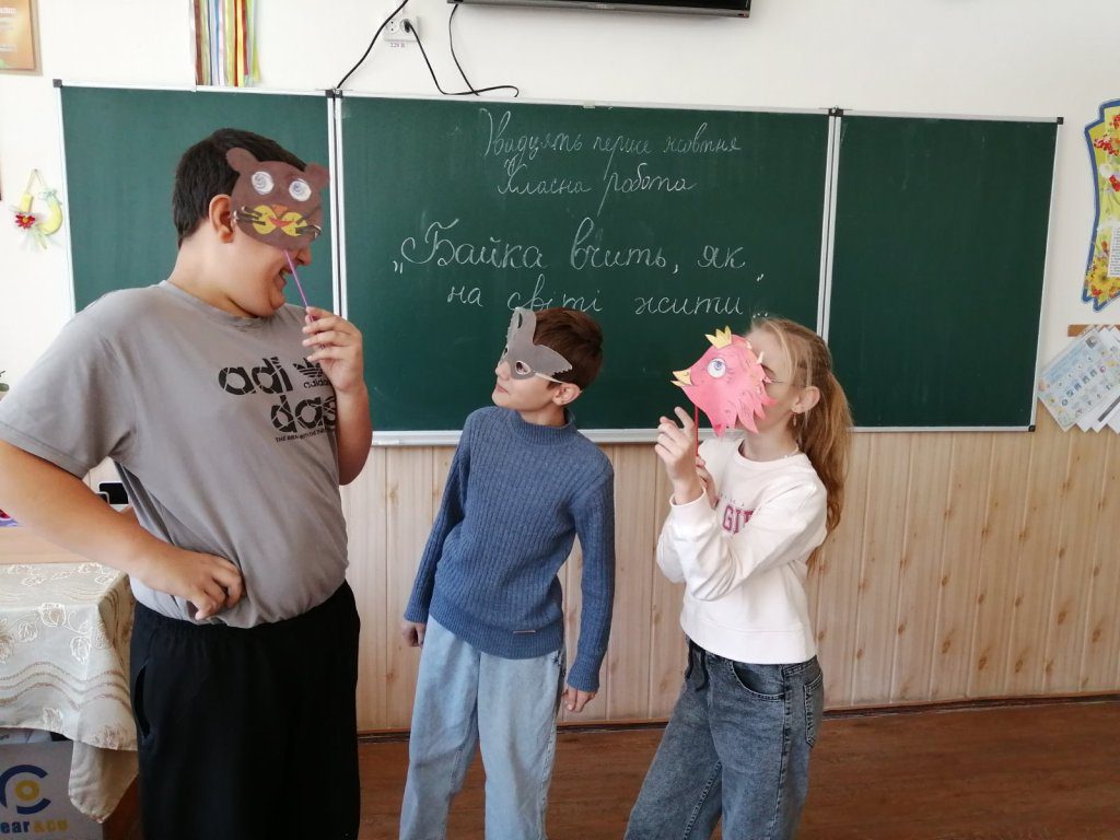 Під час уроку шестикласники пригадали особливості байки як жанру, визначили її головних героїв, мораль та повчальний зміст. Учні виразно читали байки українських авторів — Григорія Сковороди, Леоніда Глібоваа, Микити Годованця, а також народні твори, у яких у дотепній формі висміюються людські вади.