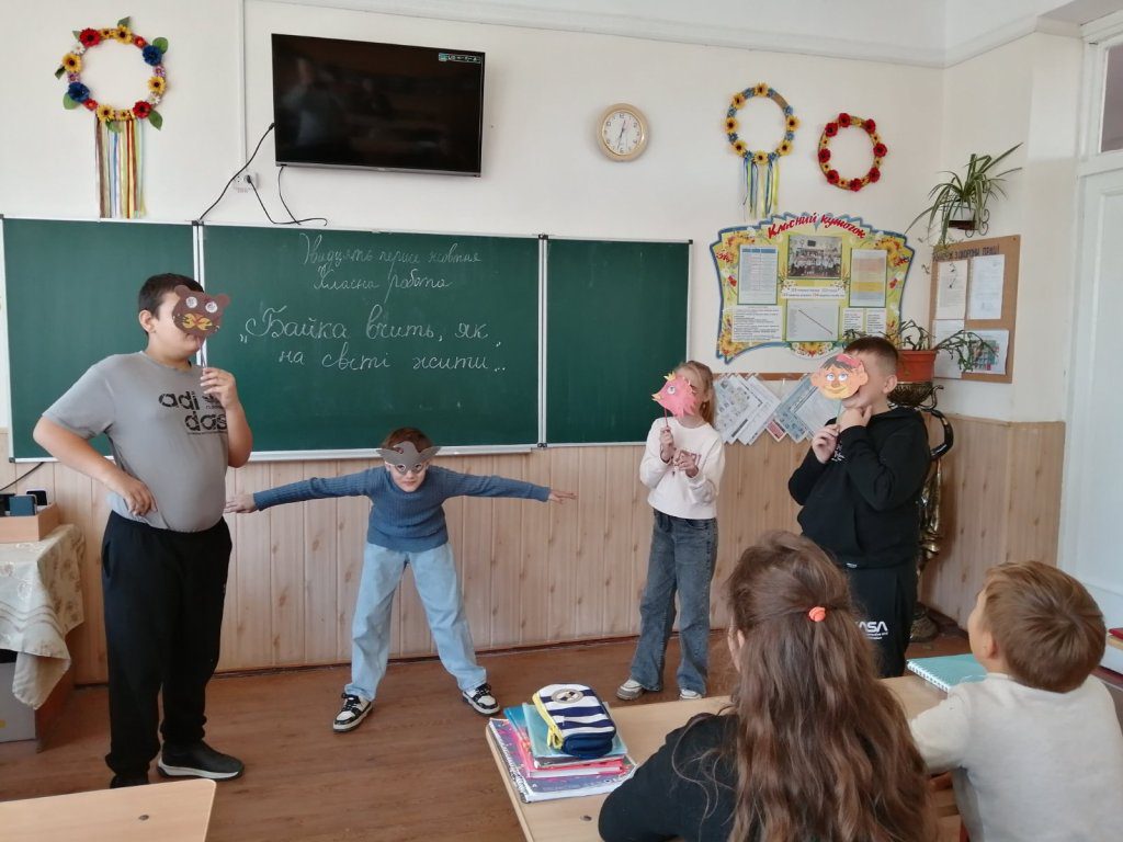 У 6-Б класі Новоселицького ліцею №1 відбувся захопливий урок української літератури (вчитель Тетяна ДІДУХ-БОЙЧУК) на тему: «Виразне читання байок. Інсценізація байок».