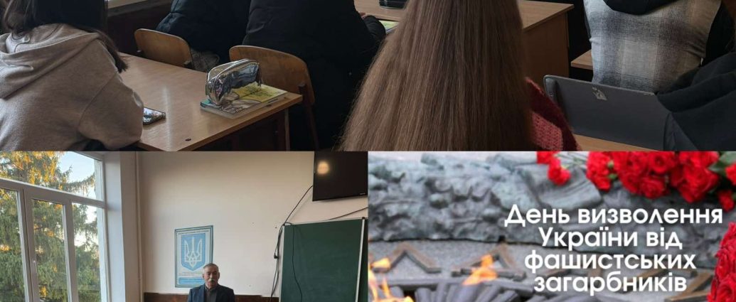 Десятикласники підготували короткі повідомлення та презентацію про визволення Києва, Одеси, Харкова, Чернівців, а також читали вірші, присвячені воїнам-визволителям. Наприкінці зустрічі учні хвилиною мовчання вшанували пам’ять полеглих героїв, які віддали своє життя за мирне небо над Україною.