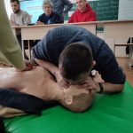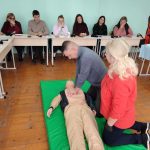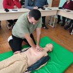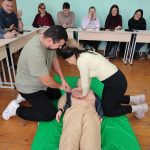 Захід поєднував лекцію з практичними вправами. Учасники ознайомилися з алгоритмами дій при втраті свідомості, зупинці дихання, кровотечах, переломах та інших критичних станах. Особливу увагу було приділено: оцінці стану постраждалого; виклику екстрених служб; базовим навичкам серцево-легеневої реанімації; використанню підручних засобів для іммобілізації та зупинки кровотечі; тампонуванню ран; накладанню турнікетів; ознайомленню з роботою дефібрилятора.