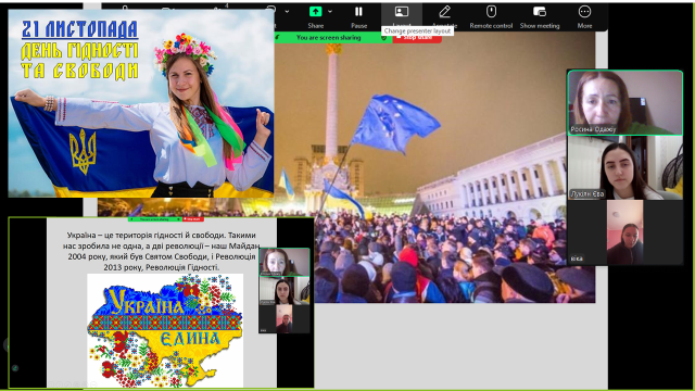 Виховна справа розпочалася з перегляду відеоролика про події Помаранчевої революції та Революції Гідності, який допоміг учням глибше зануритися в атмосферу тогочасних подій. Після перегляду відбулася змістовна бесіда про причини та наслідки цих подій, їхній вплив на формування сучасної української державності.