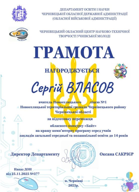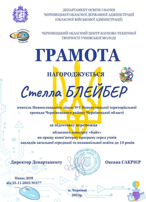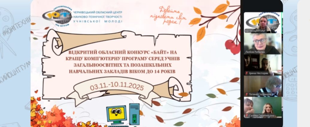 Протягом листопада 2025 року відбувся відкритий обласний конкурс «Байт» на кращу комп’ютерну програму серед учнів загальноосвітніх та позашкільних навчальних закладів віком до 14 років (далі – Конкурс).