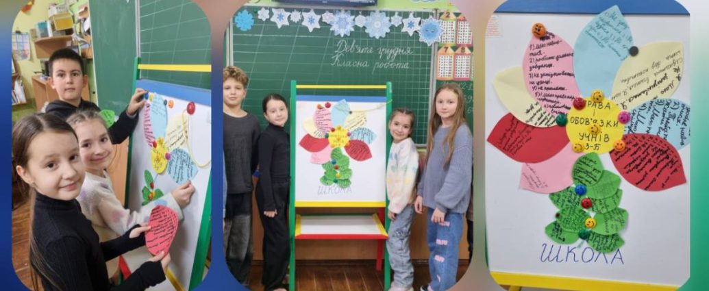 Діти працювали в групах, створюючи “Квітку класу”. На пелюстках вони записували свої права, а на стеблі — обов’язки. Така форма роботи допомогла учням зрозуміти, що права завжди пов’язані з відповідальністю.