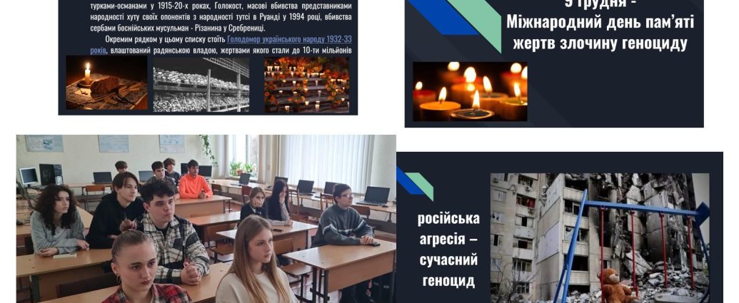 9 грудня світ відзначає Міжнародний день пам’яті жертв злочину геноциду. Ця дата нагадує про необхідність вшанувати мільйони людей, які постраждали від масових злочинів, а також усвідомити важливість запобігання подібним трагедіям у майбутньому.