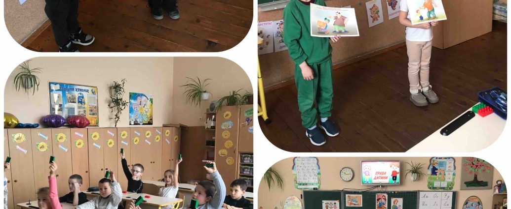 Провели її у вигляді гри-мандрівки «Свої права ти добре знай, їх шануй та поважай». Діти переглянули відеоролик «Що ми знаємо про свої права та обов’язки?» та позмагались у літературній вікторині «Казкова правова абетка». Також пограли в гру «Мій обов’язок в сім’ї». Першокласники переглядали сюжетні малюнки та піднімали фішечки, якщо вони виконують в сім’ї ці обов’язки.