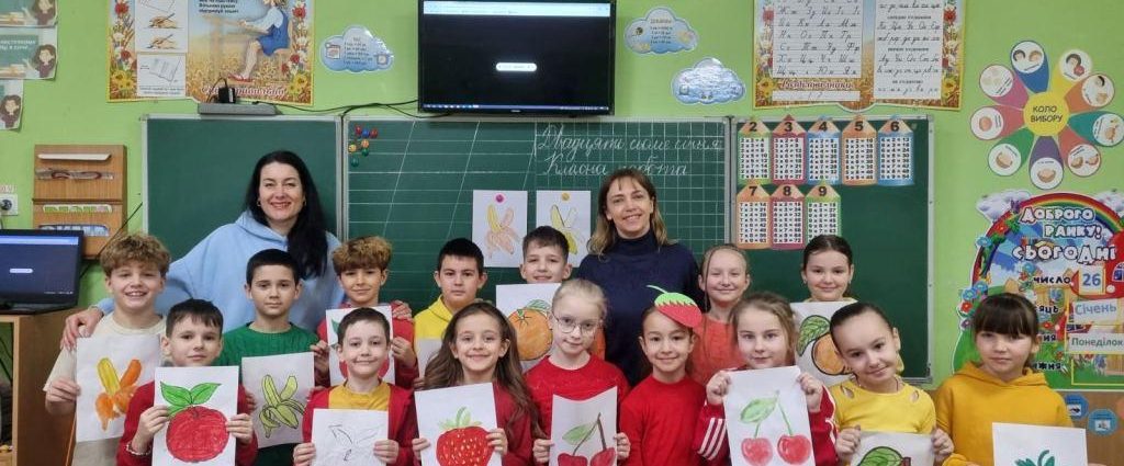 Під час уроку третьокласники із задоволенням малювали яскраві фрукти, передаючи їхню форму та колір, а паралельно знайомилися з англійськими назвами фруктів. Творча діяльність допомогла дітям краще запам’ятати нову лексику та зробила навчання легким і захопливим.