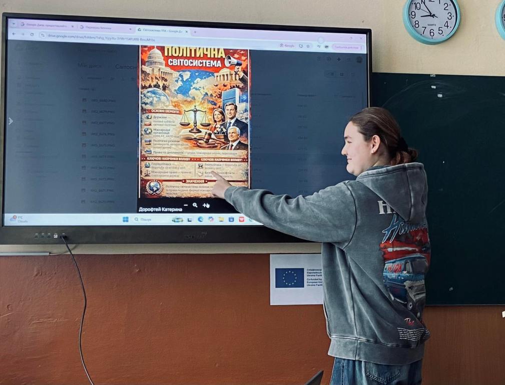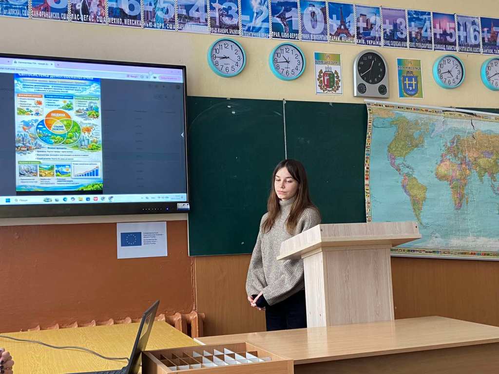 Під час уроків школярі аналізували глобальні виклики, моделювали кризові ситуації та визначали взаємозв’язки між різними елементами світової системи. Особливу увагу було приділено місцю України у сучасному глобальному просторі.