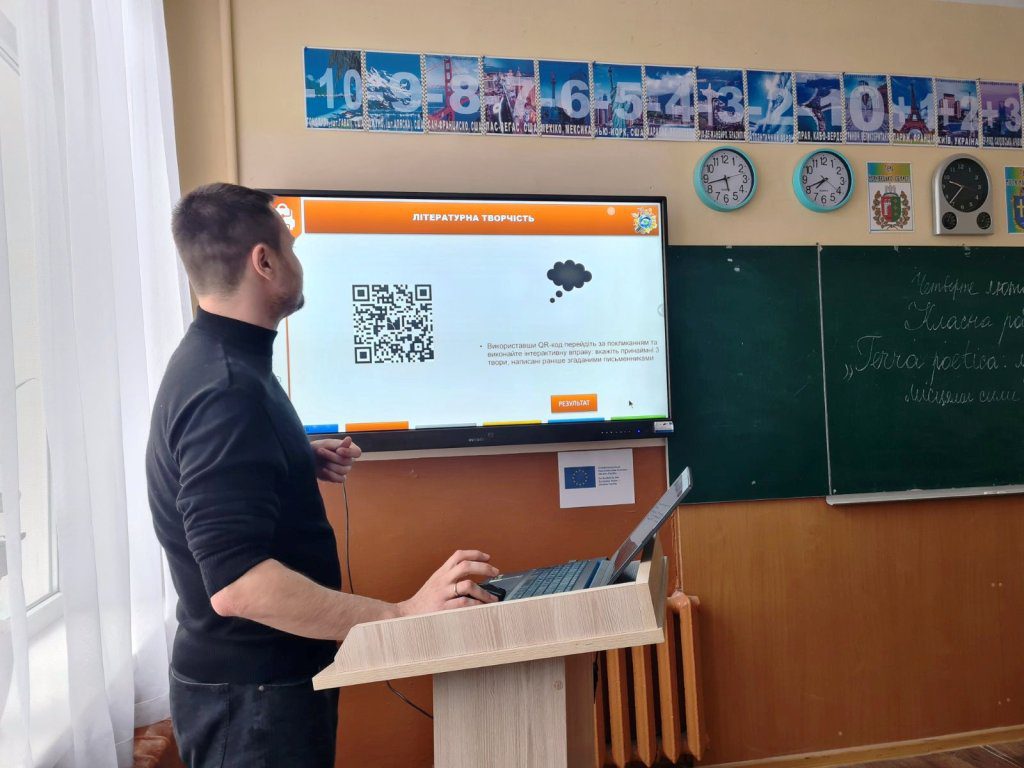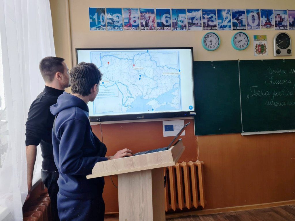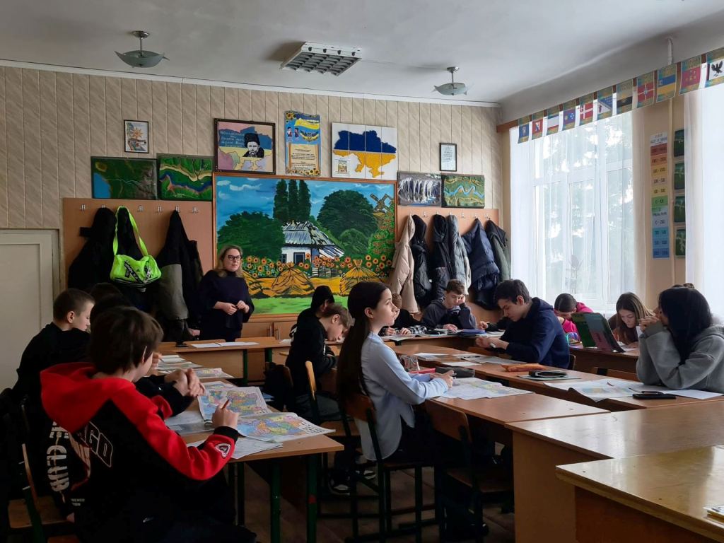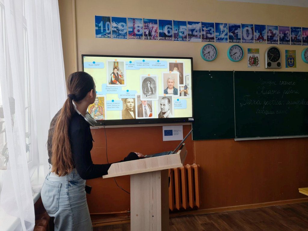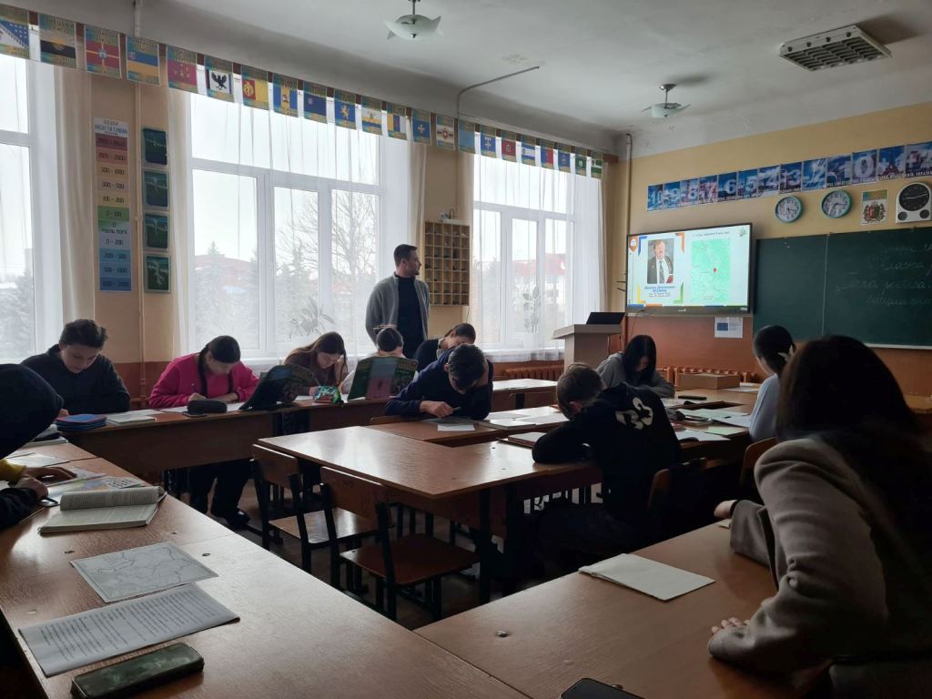 Наталія ПІДЛІСНА, вчитель української літератури та Сергій ВЛАСОВ, вчитель географії запропонували здобувачам освіти різноманітні інтерактивні вправи, роботу з біографіями письменників та контурною картою та інші активності, спрямовані на формування знань про відомих українських письменників, які творили у різні часи; про місця їх народження письменників; нові факти адміністративно-територіального устрою України.