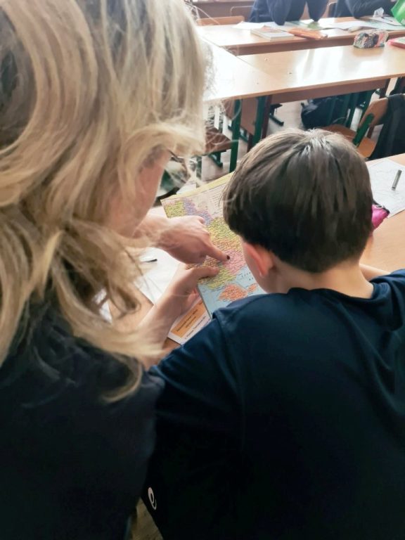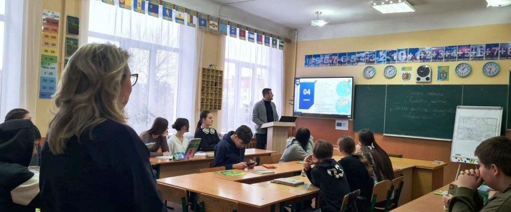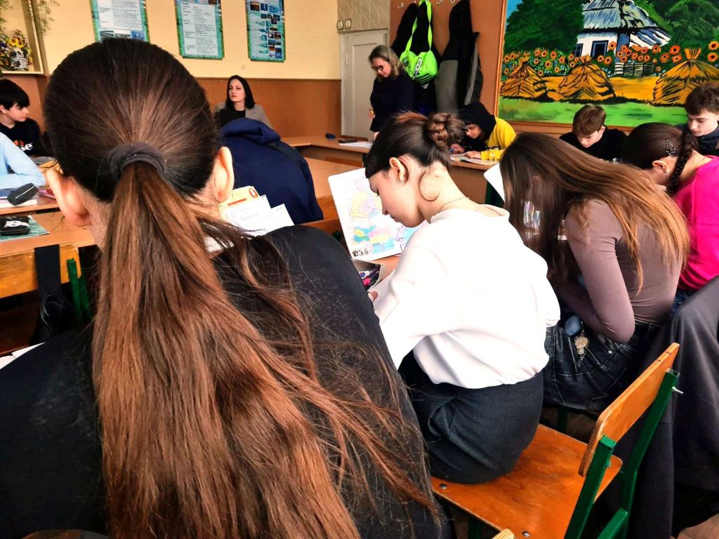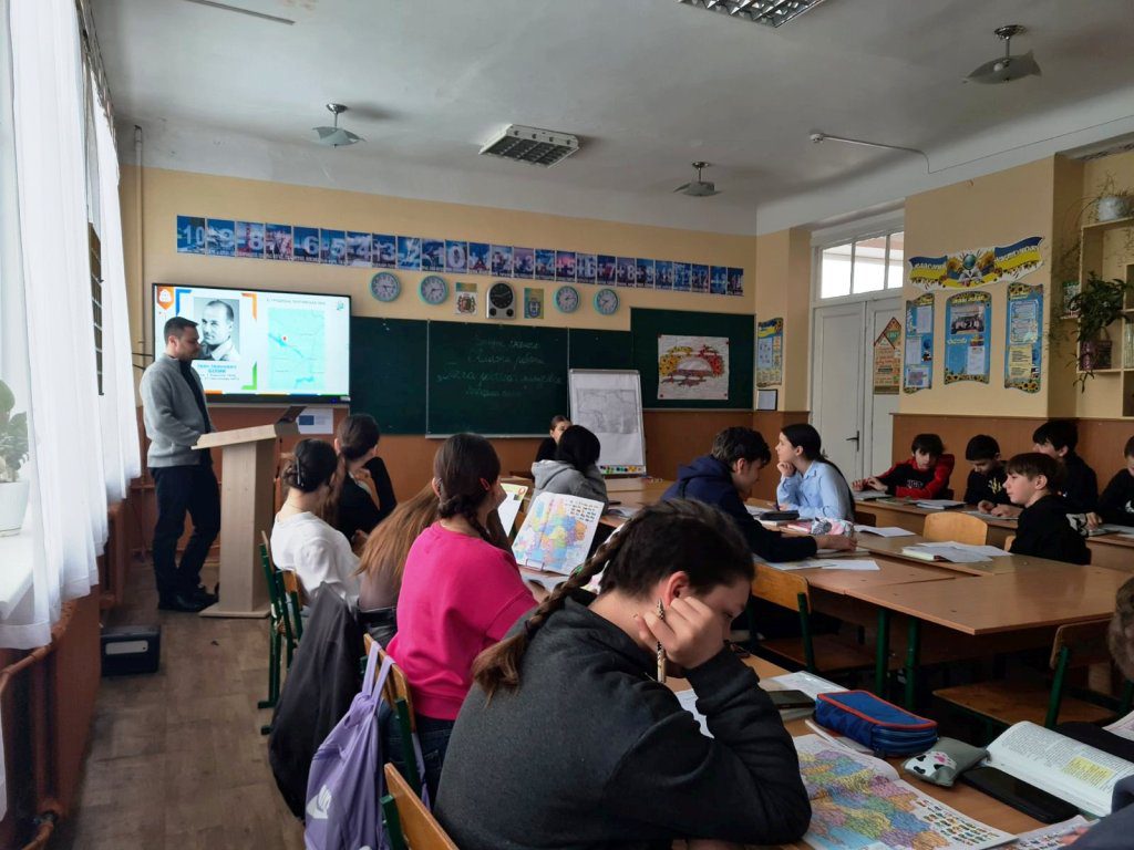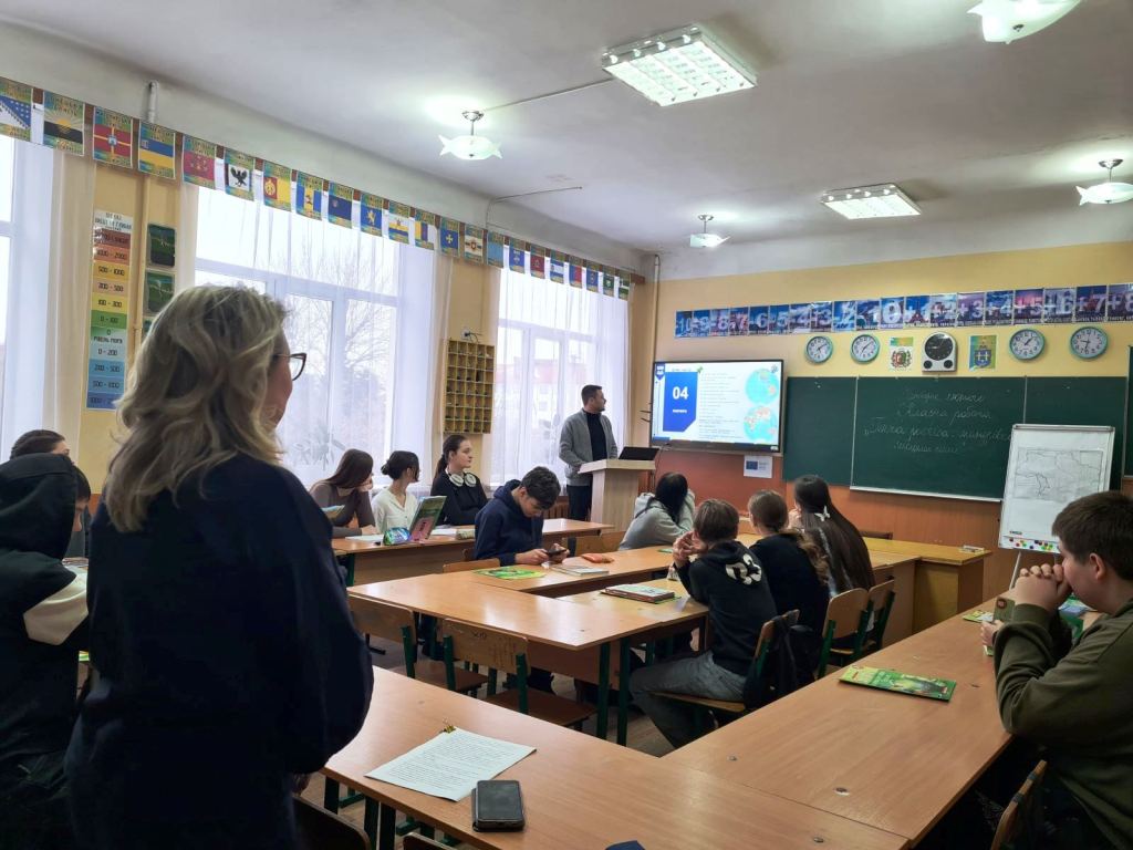 Наталія ПІДЛІСНА, вчитель української літератури та Сергій ВЛАСОВ, вчитель географії запропонували здобувачам освіти різноманітні інтерактивні вправи, роботу з біографіями письменників та контурною картою та інші активності, спрямовані на формування знань про відомих українських письменників, які творили у різні часи; про місця їх народження письменників; нові факти адміністративно-територіального устрою України.