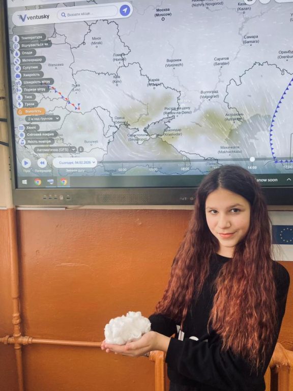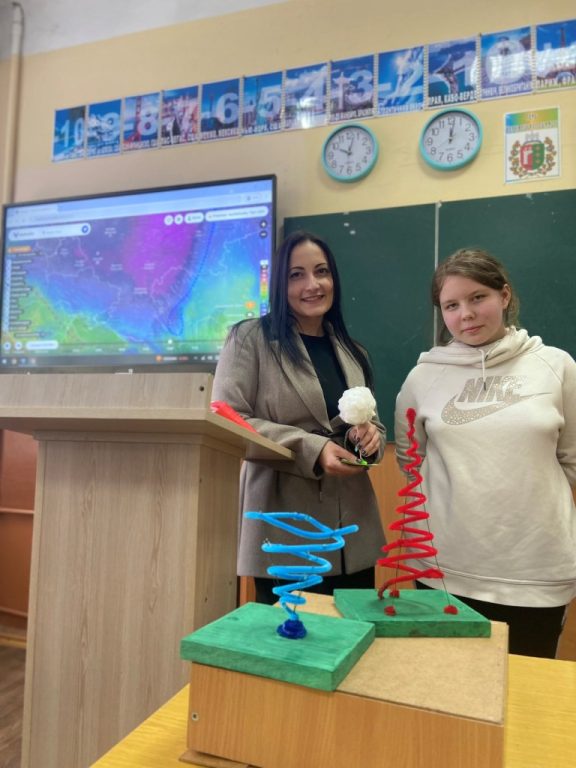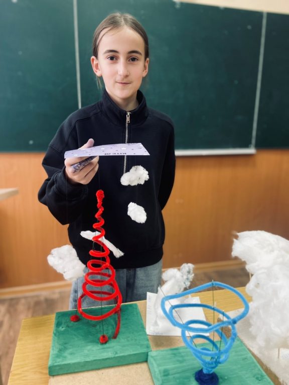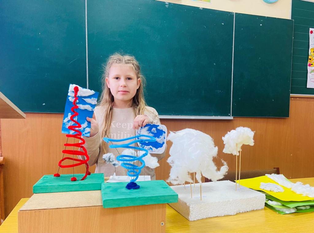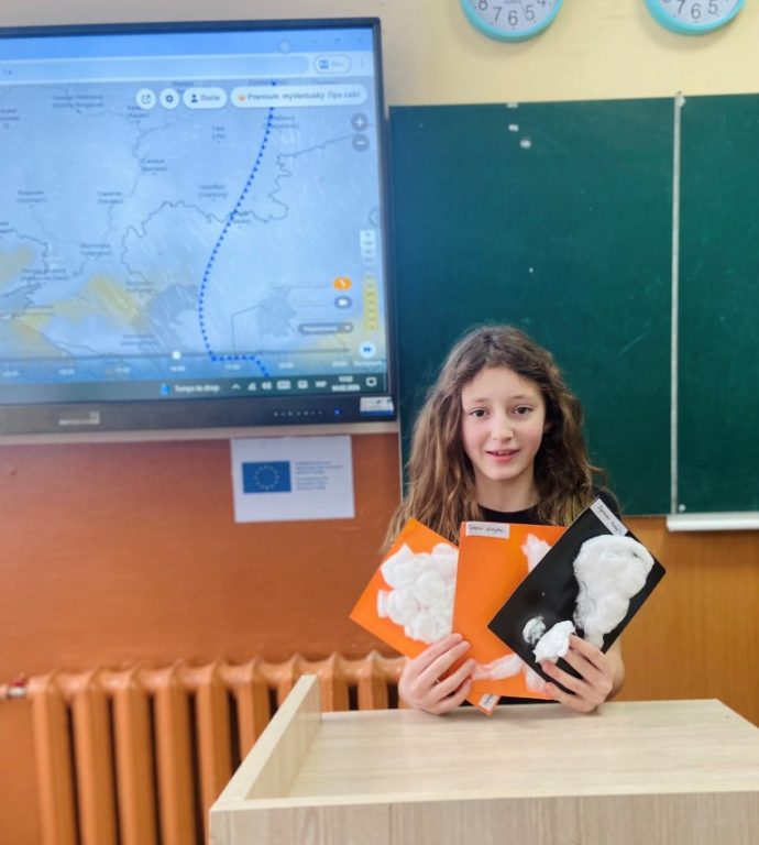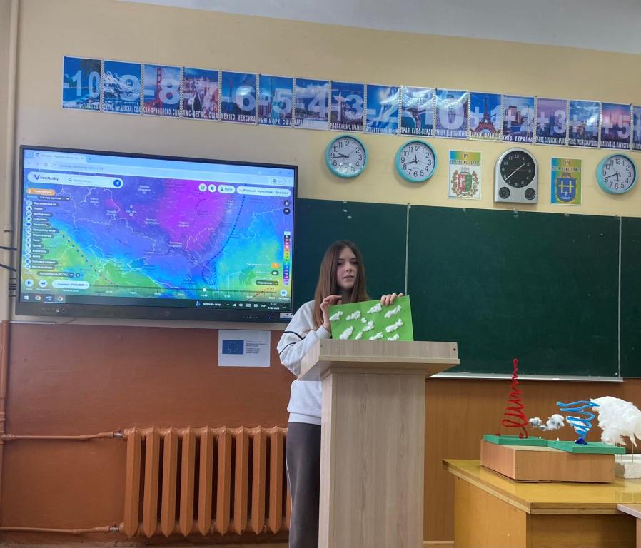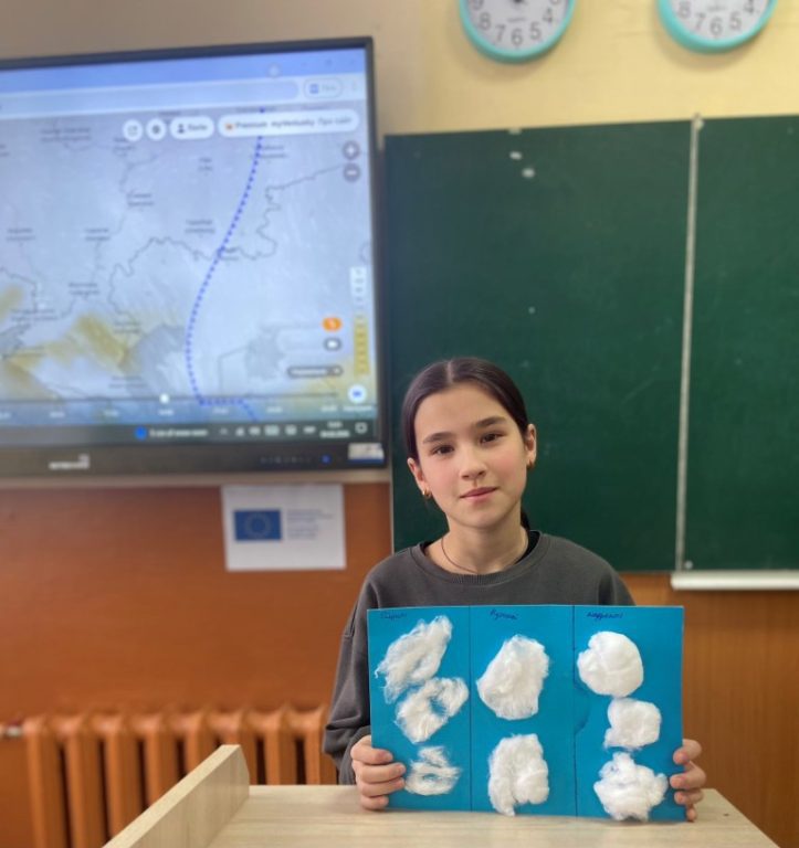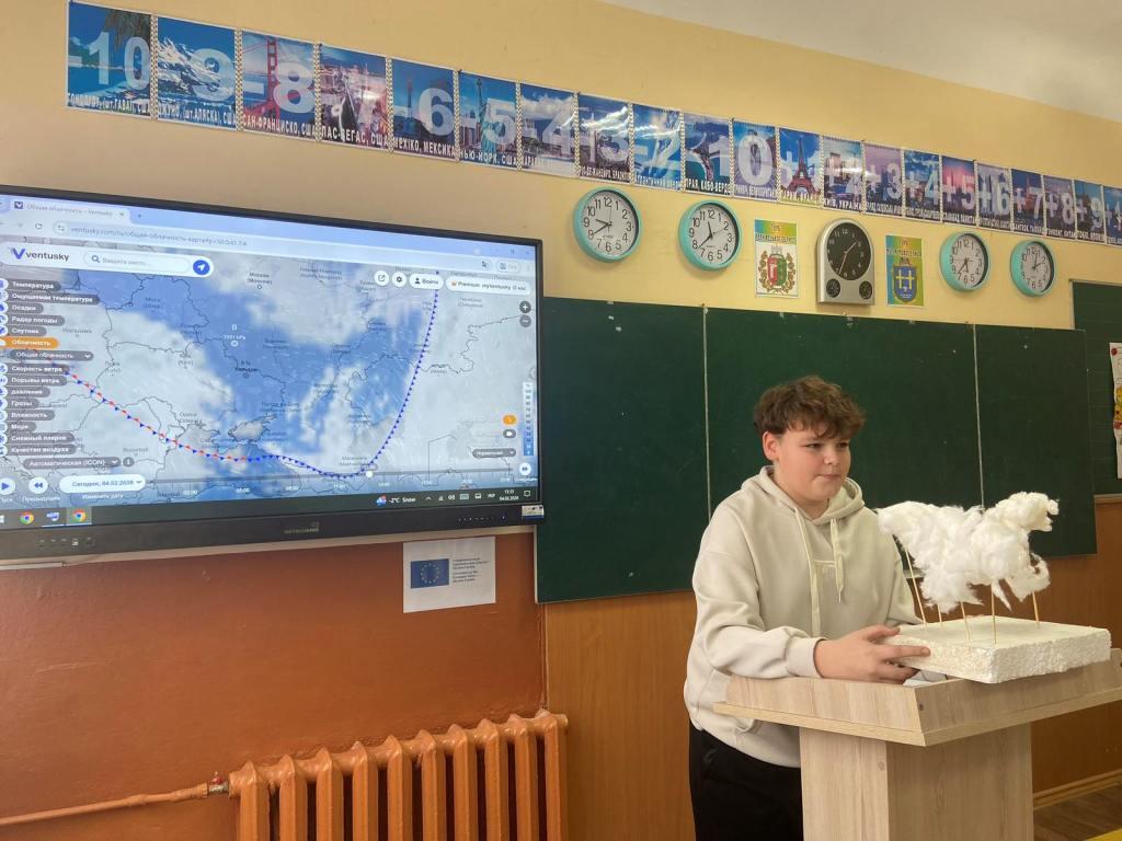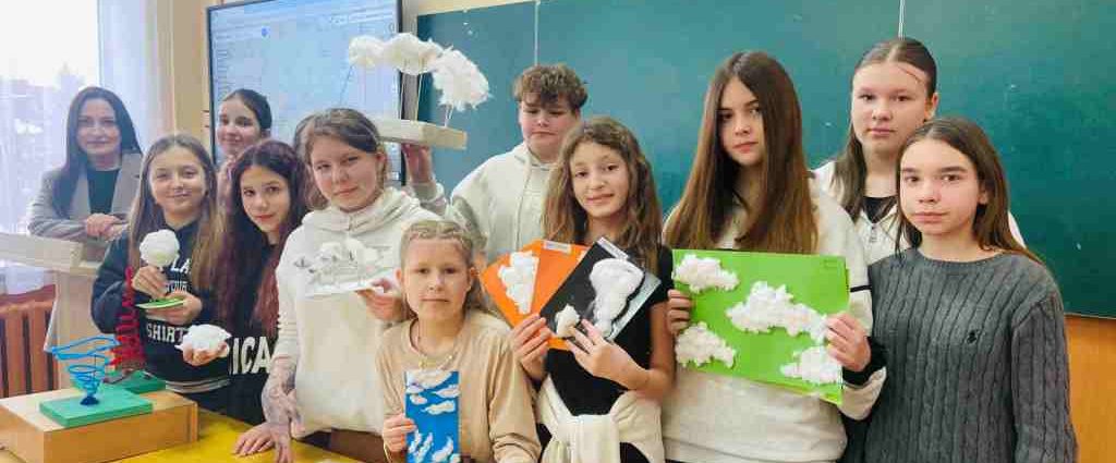 Учні заздалегідь підготували власноруч виготовлені моделі хмар, які презентували та пояснювали однокласникам, виступаючи в ролі справжніх метеорологів.