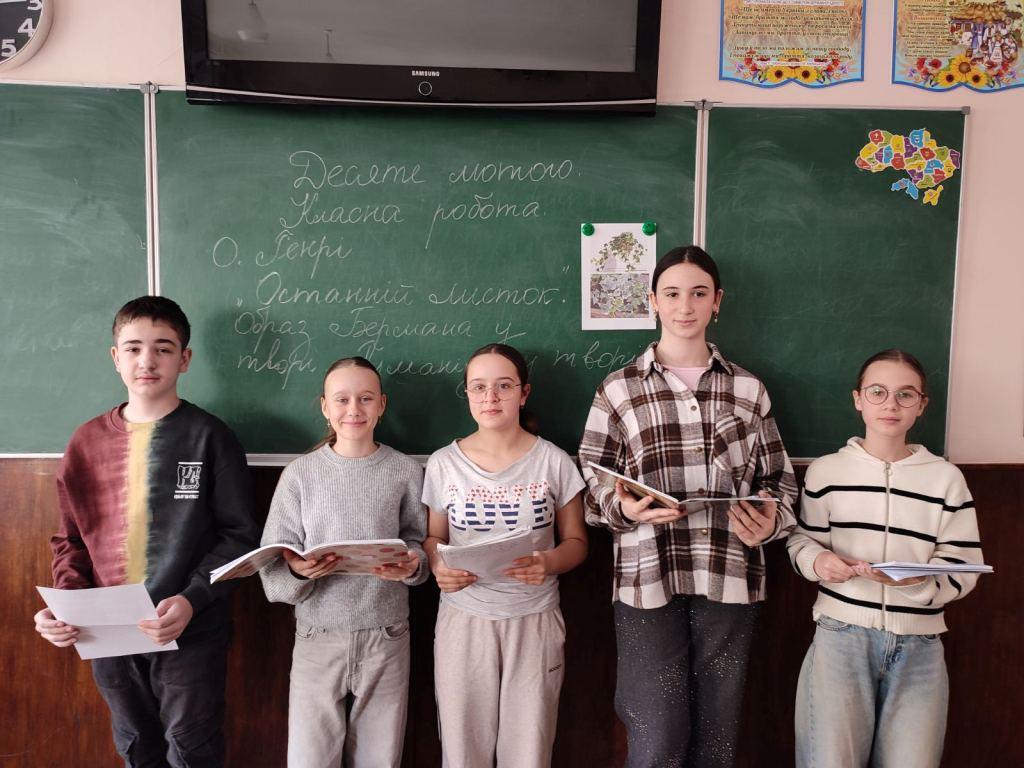 Важливим етапом стала творча робота в зошитах. Учні виконували письмові завдання: формулювали власні висновки про значення надії у житті людини, створювали міні-роздуми про силу підтримки, добирали символи життя, а також ілюстрували образ останнього листка як знак віри та відродження. На завершення дійства відбулася рефлексія, під час якої діти підкреслили, що твір О. Генрі навчає милосердя, самопожертви та віри в людину. Інтегрований урок сприяв формуванню цілісного бачення світу, розвитку емоційного інтелекту та утвердженню гуманістичних цінностей як важливої складової гармонійного співіснування людини і природи.