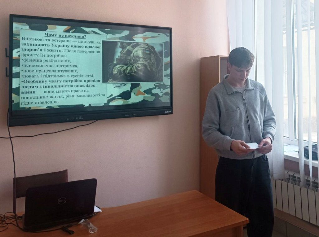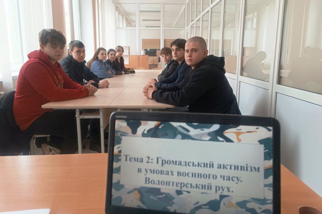 Учні 10 класу, в рамках вивчення модуля «Основи національної безпеки та оборони України» дізналися про сектор безпеки і оборони, його завдання та структуру; про роль НАТО та стратегічних партнерів України у сфері безпеки. Також учні дізналися про волонтерський рух як складову підвищення спроможності сил оборони. Крім того, здобувачі освіти розмірковували про адаптацію суспільства до потреб військовослужбовців та військовослужбовець та ветеранів і ветераном війни, зокрема осіб з інвалідністю внаслідок війни.