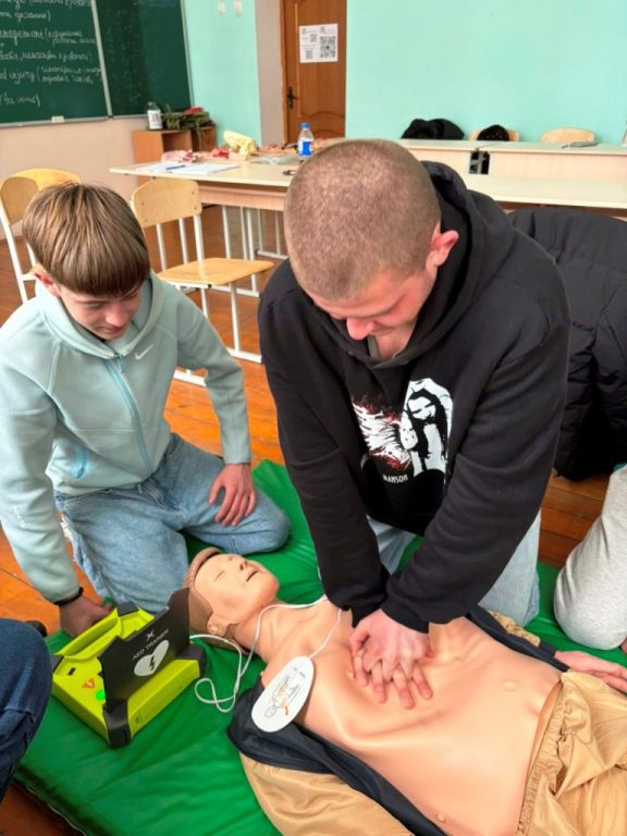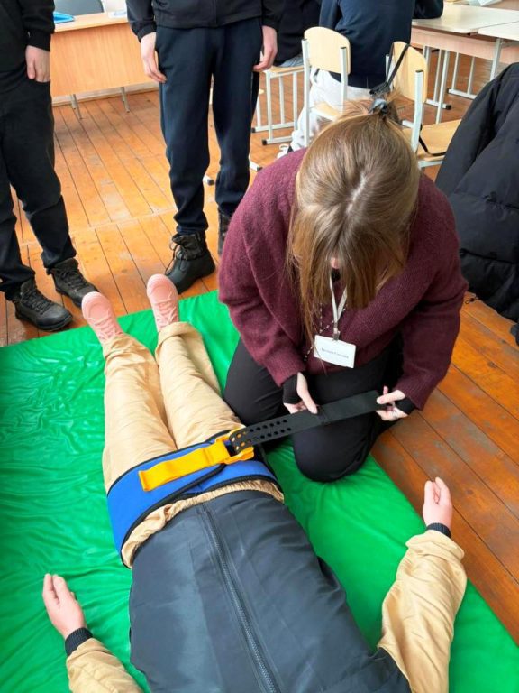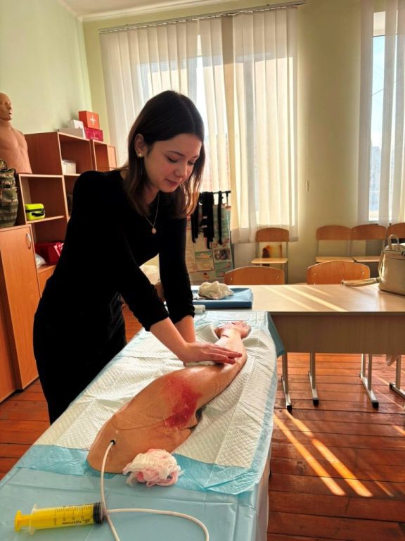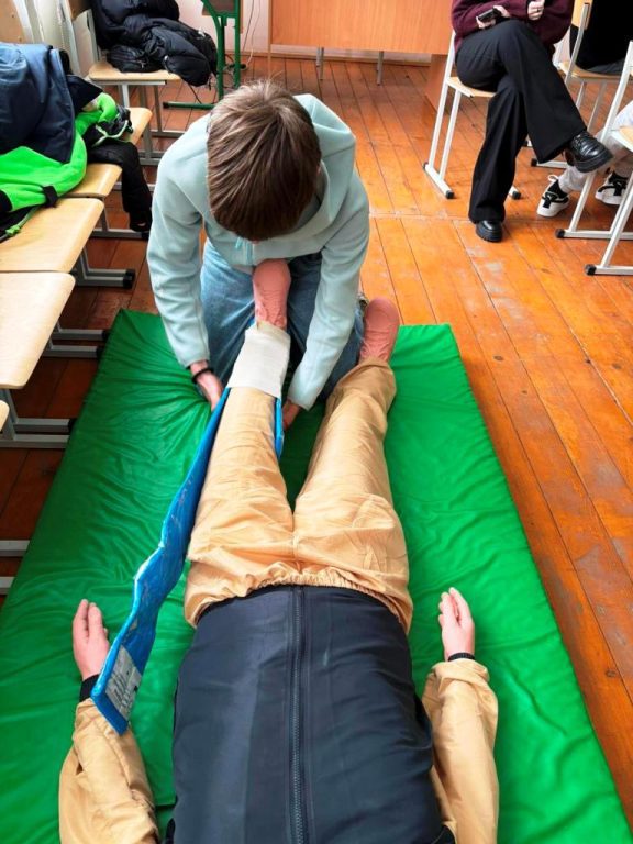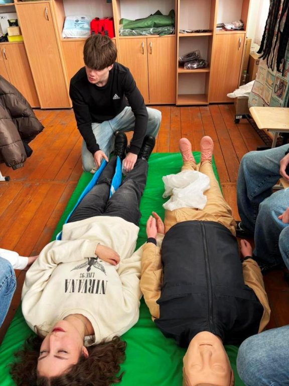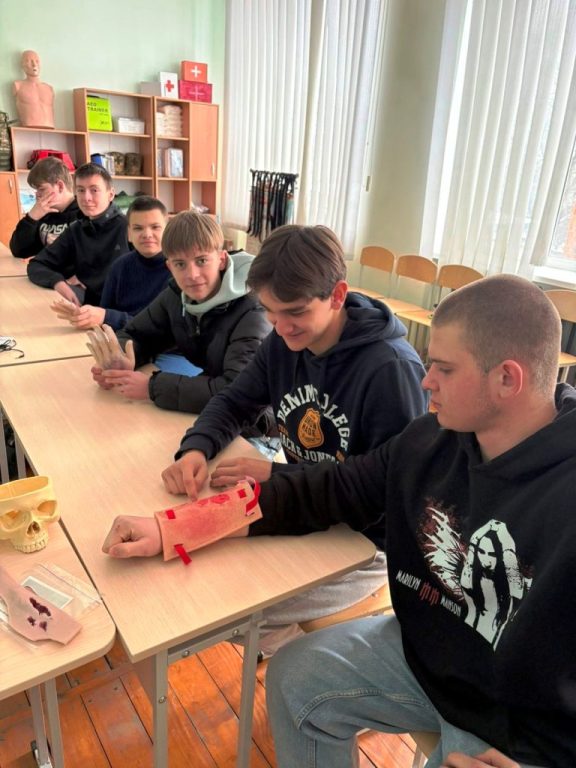 Під час вивчення модуля «Домедична допомога в умовах бою» одинадцятикласники вчилися оглядати постраждалого, перевіряти стан свідомості, оцінювати травми у тактичних умовах, контролювати кровотечі.