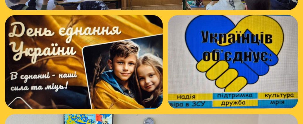 Учні підготували короткі виступи про історію Дня єднання, його значення для України та важливість єдності в сучасному світі. Вони обговорили події, які стали основою для святкування цього дня. Проведено вікторину на тему єдності та історії України.
