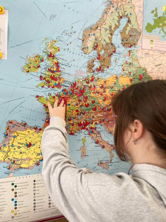 Учні створювали «рельєф життя» Грегуара: визначали гори перешкод, низини відчаю та оазис підтримки, працювали з картою світу, знаходили країну-лідера з видобутку міді — Чилі, обговорювали технологічний розвиток Японія та Німеччина, виконували логістичні розрахунки маршруту.