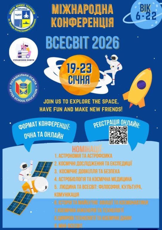Підтримка дітей і молоді, обговорення ними питань Всесвіту, розвиток інтересу до авіації та космосу, науки, техніки, технологій. Саме таку мету ставили організатори конкурсу – Управління освіти Чернівецької міської ради, Чернівецький центр юних техніків імені Леоніда Костянтиновича Каденюка Чернівецької міської ради за сприяння Міжнародної асоціації позашкільної освіти (МАПО) та Чернівецького міського центру молодіжного аерокосмічного об‘єднання «Сузір’я» (УМАКО «Сузір’я»).