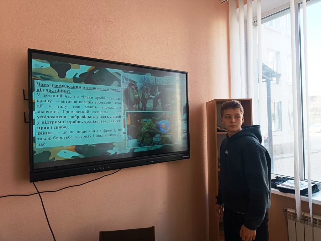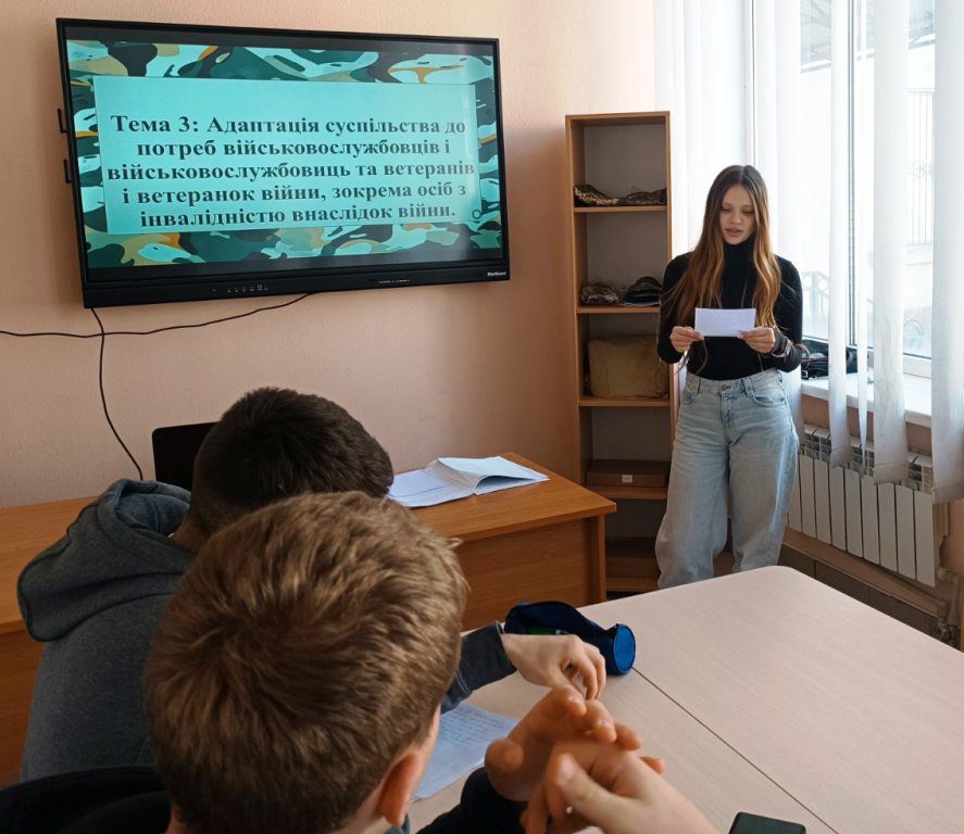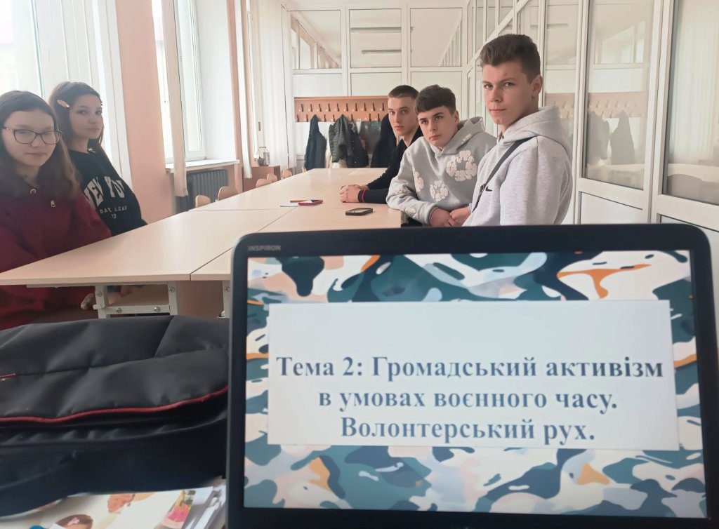 Учні 10-х класів, в рамках вивчення модуля «Основи національної безпеки та оборони України» дізналися про сектор безпеки і оборони, його завдання та структуру; про роль НАТО та стратегічних партнерів України у сфері безпеки. Також учні дізналися про волонтерський рух як складову підвищення спроможності сил оборони. Крім того, здобувачі освіти розмірковували про адаптацію суспільства до потреб військовослужбовців та військовослужбовець та ветеранів і ветераном війни, зокрема осіб з інвалідністю внаслідок війни.