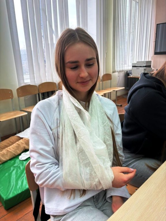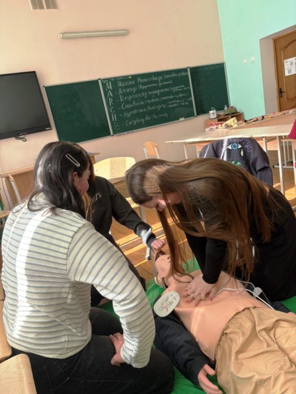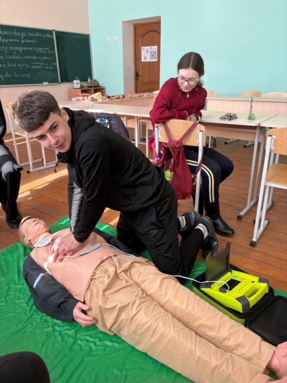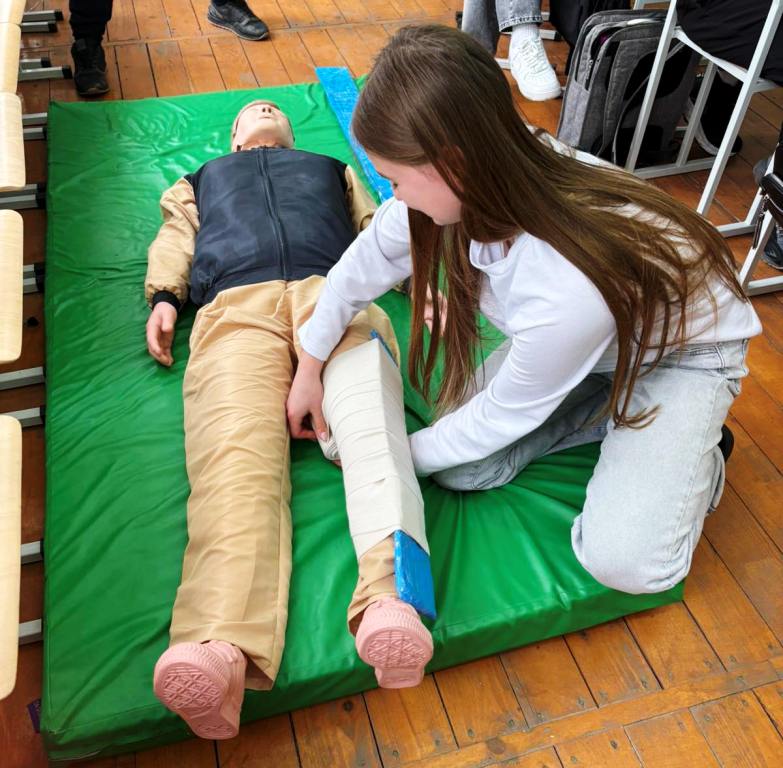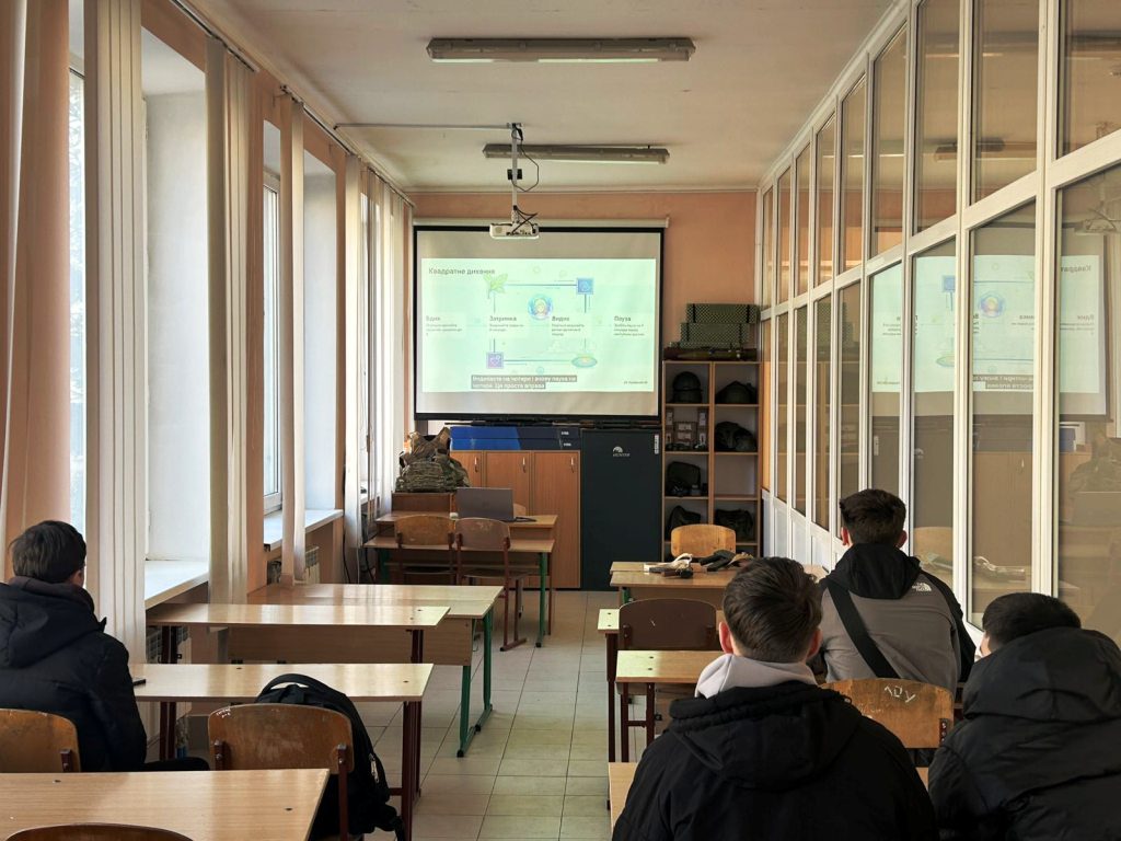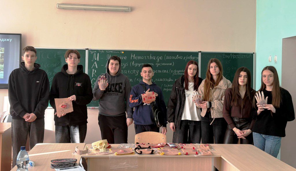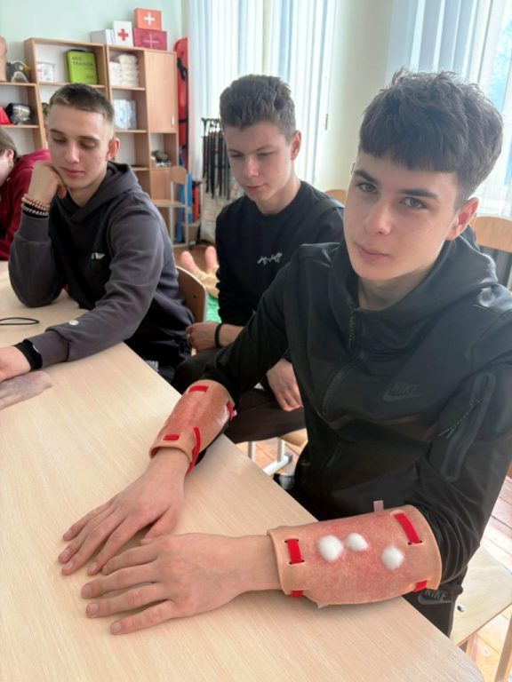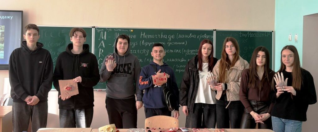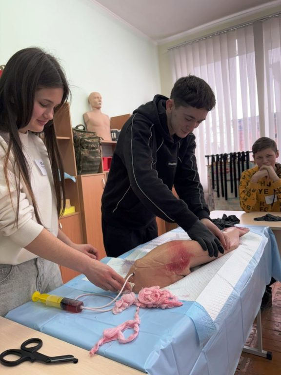 Під час вивчення модуля «Домедична допомога в умовах бою» одинадцятикласники вчилися оглядати постраждалого, перевіряти стан свідомості, оцінювати травми у тактичних умовах, контролювати кровотечі.