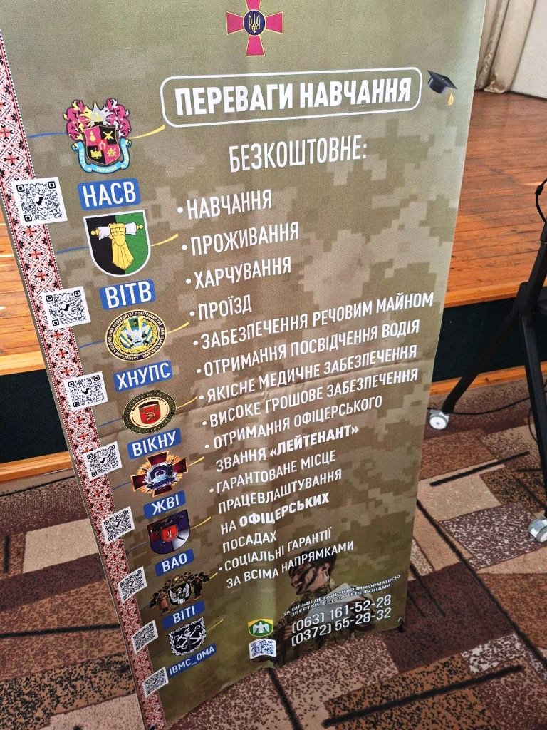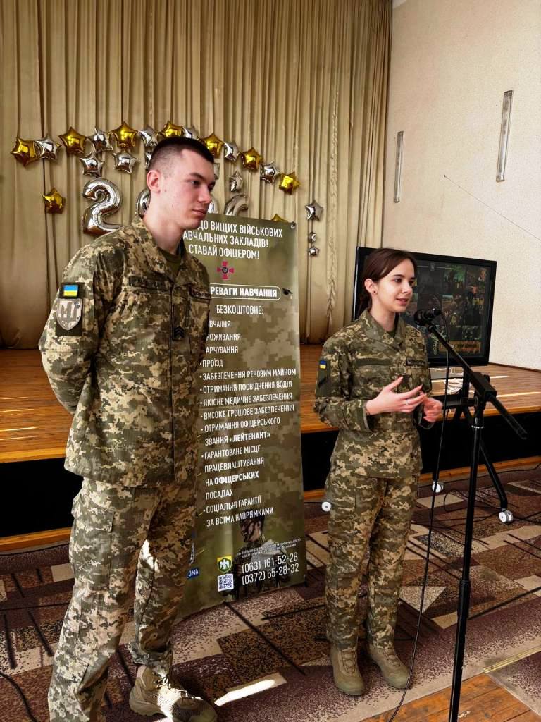 Здобувачі освіти дізналися про переваги навчання, правила та умови вступу, а також про перспективи військової професії та можливості кар’єрного зростання.