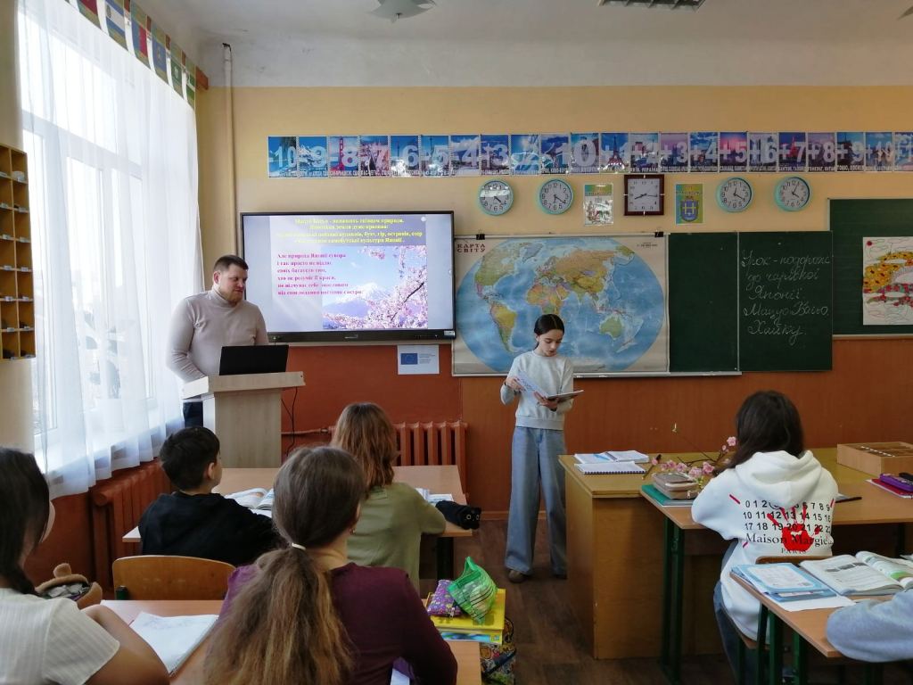 У 6-Б класі Новоселицького ліцею №1 відбувся цікавий інтегрований урок зарубіжної літератури та географії на тему: «Урок-подорож до чарівної Японії. Мацуо Басьо. Хайку» (вчителі Тетяна ДІДУХ-БОЙЧУК та Віталій МІСЮРА).