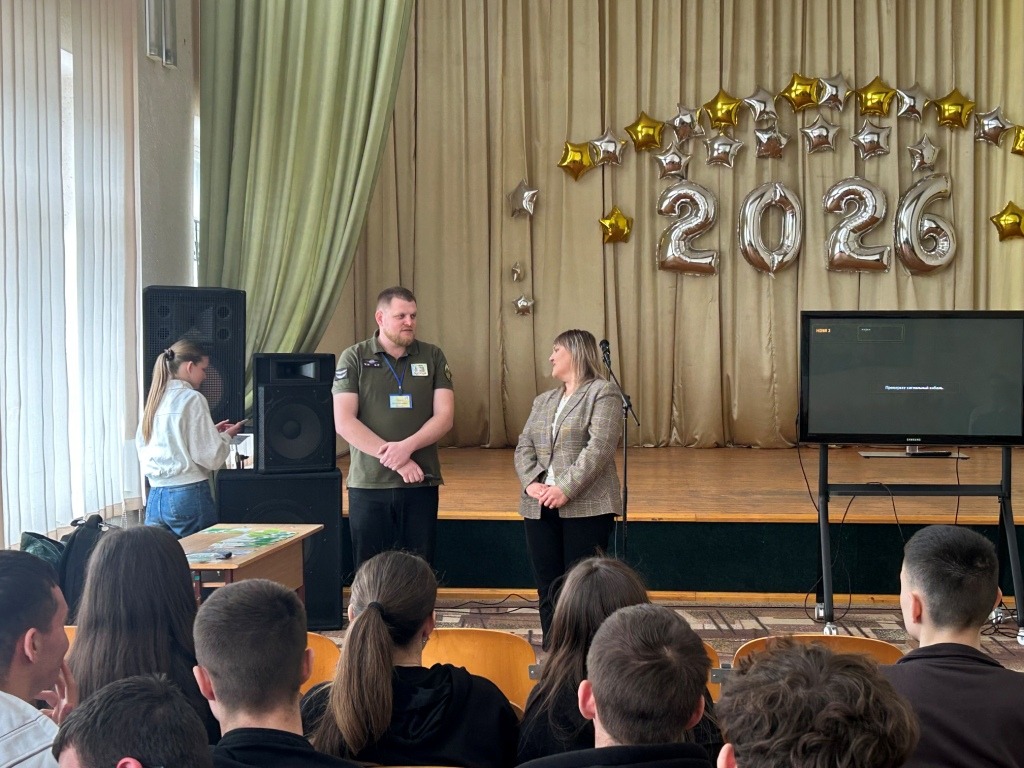 Ольгою ПАЛАНИЧКО, викладачем кафедри географії України та регіоналістики, доцентом, кандидатом географічних наук та студентами факультету Яною ОХРІМЕНКО, випускницею ліцею 2025 року та Віталієм МІСЮРОЮ, вчителем Осередку “Захисту України”, було представлено можливості вступу на географічні спеціальності, окреслено переваги навчання на факультеті, анонсовано різноманітні освітні програми, що пропонує кафедра та факультет вцілому.