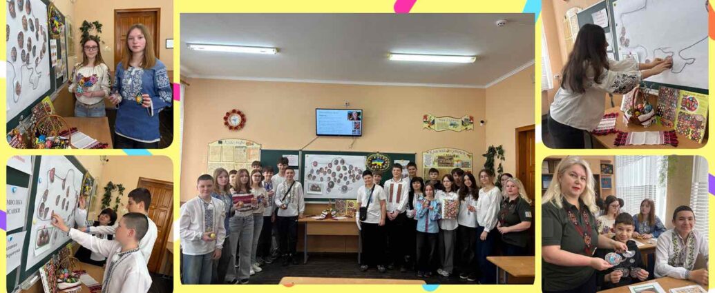 Під час практичної частини учні робили аплікацію писанки, використовуючи традиційні символи та кольори. Кожна робота мала свою історію й пояснення, що допомогло глибше відчути зв’язок із минулим. На завершення учні створили писанкову карту України.