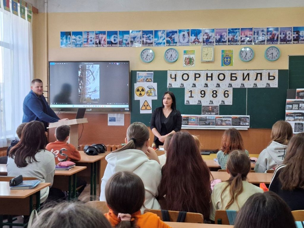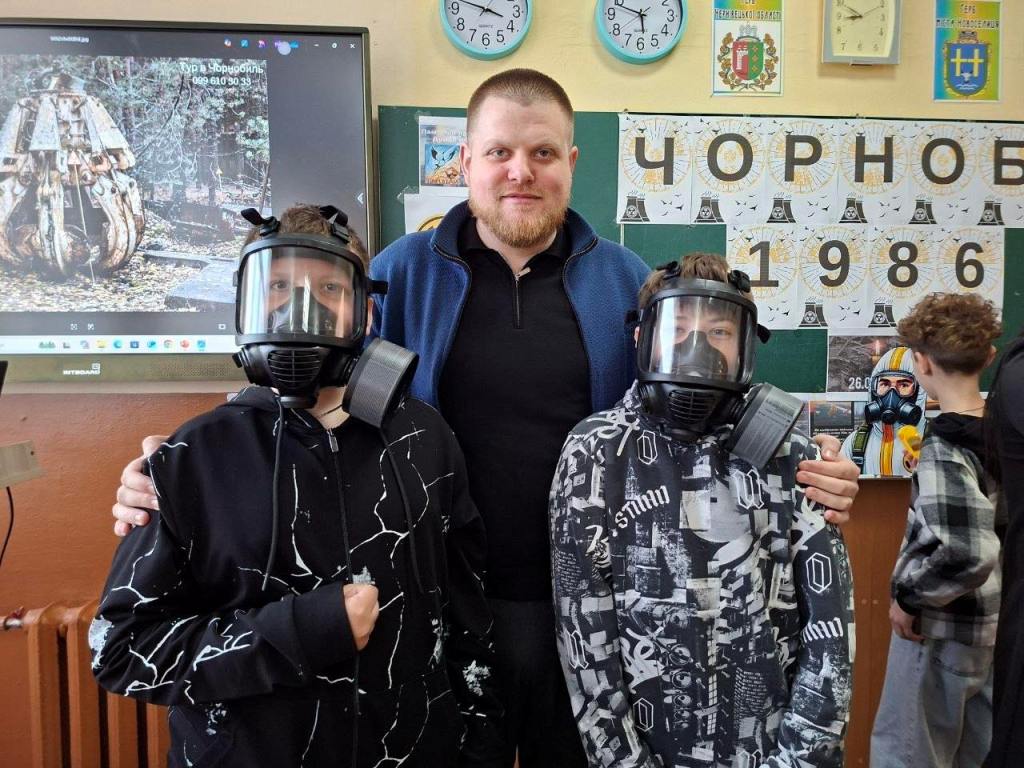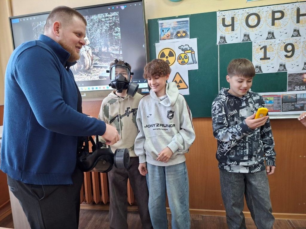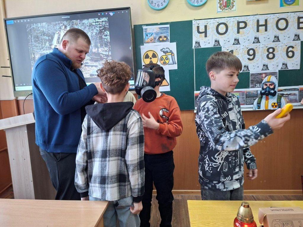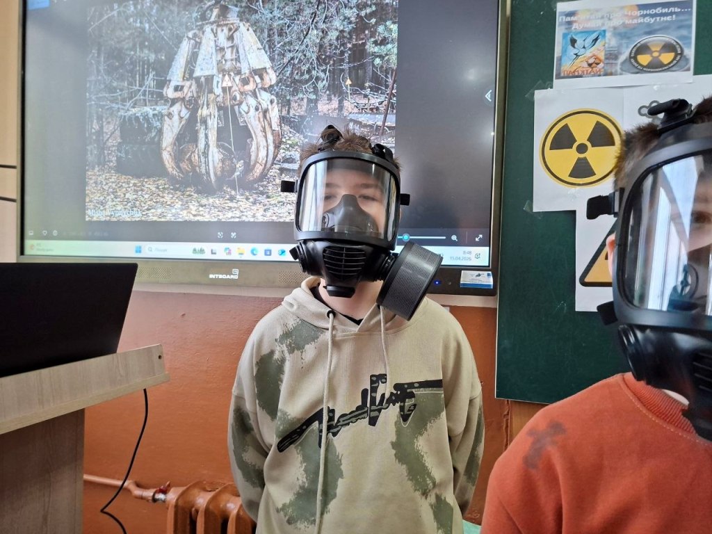 Учні переглянули пізнавальні відеоматеріали, які допомогли глибше відчути атмосферу тих подій та усвідомити масштаби катастрофи. Особливу зацікавленість викликала практична частина заняття: школярам було продемонстровано засоби індивідуального захисту — протигази, а також дозиметр, за допомогою якого вимірюють рівень радіаційного фону.