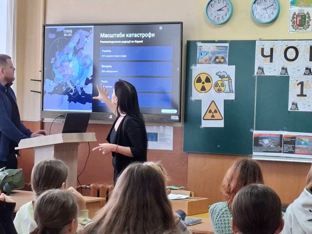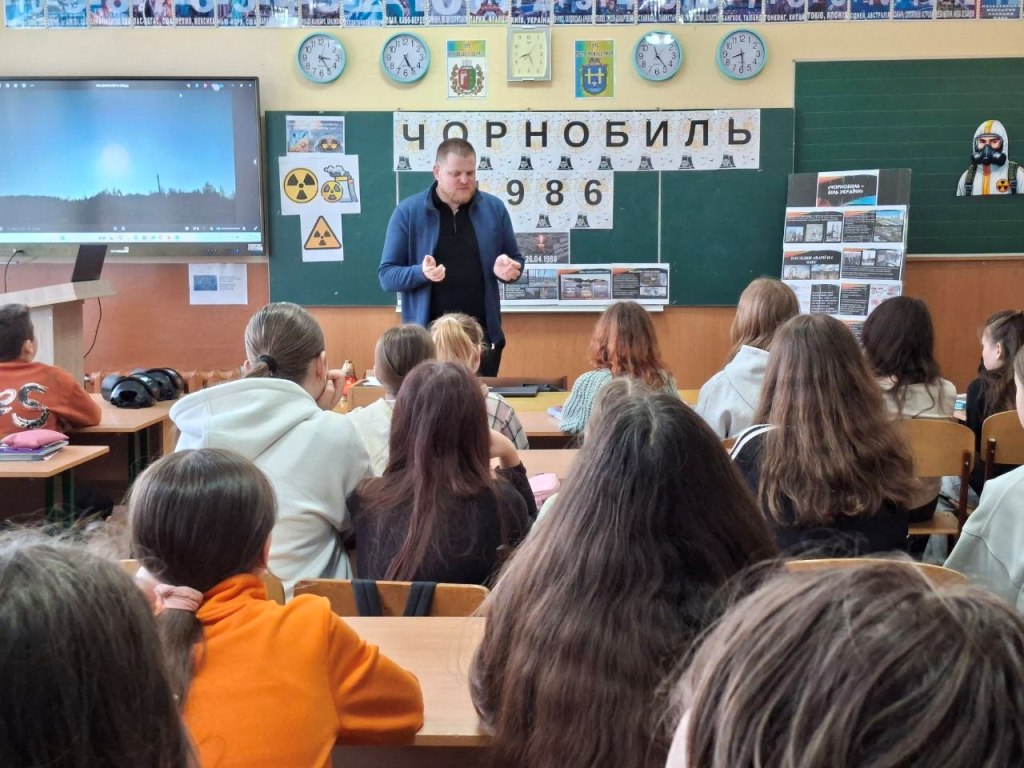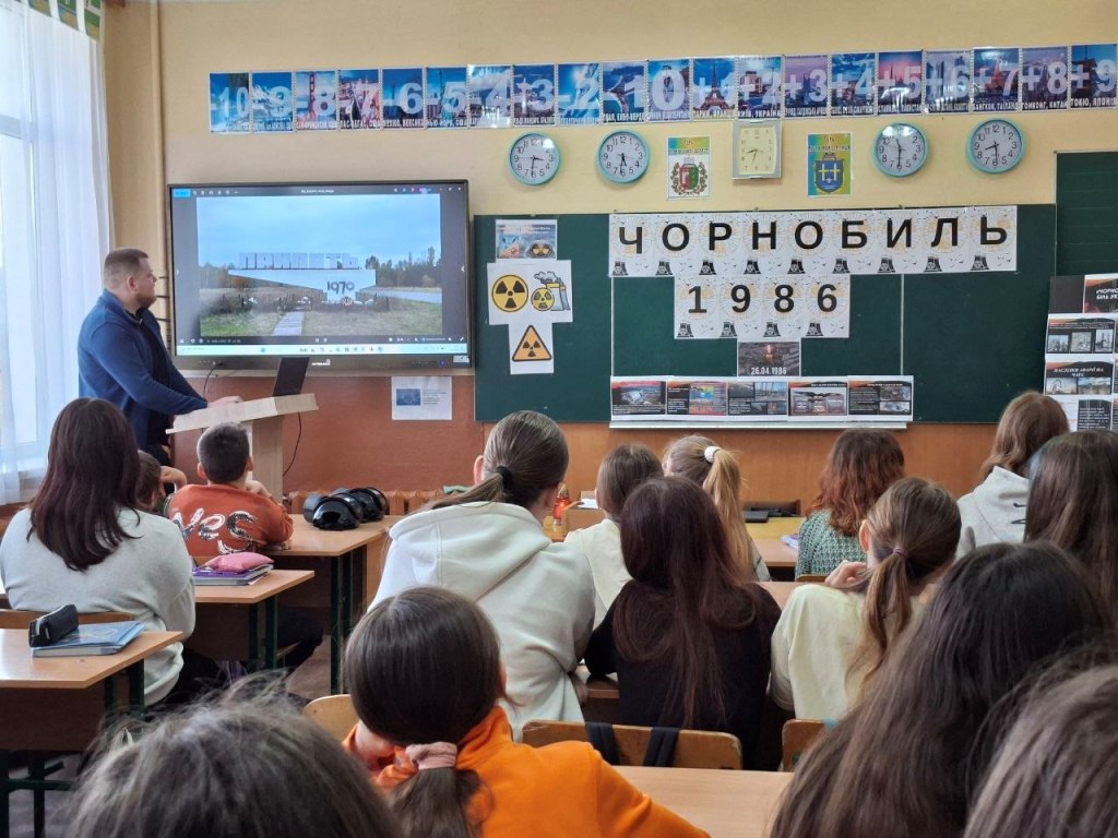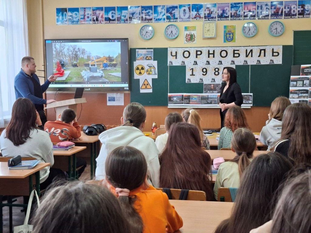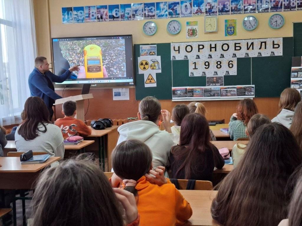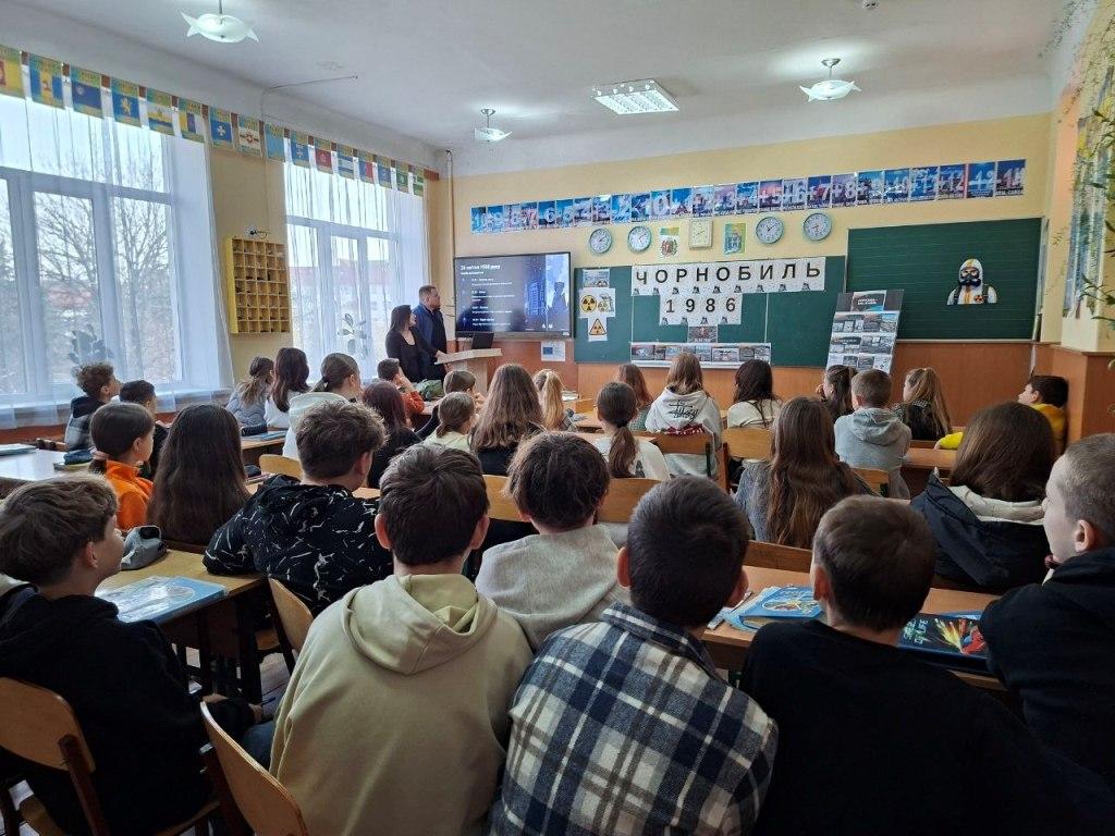 Учні переглянули пізнавальні відеоматеріали, які допомогли глибше відчути атмосферу тих подій та усвідомити масштаби катастрофи. Особливу зацікавленість викликала практична частина заняття: школярам було продемонстровано засоби індивідуального захисту — протигази, а також дозиметр, за допомогою якого вимірюють рівень радіаційного фону.