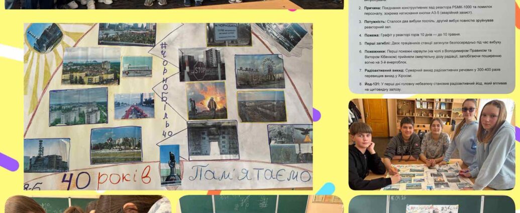 Підсумком роботи став фотоколаж «40 років — 40 фактів», у якому учні відобразили найважливіші моменти трагедії та її наслідків. Колаж став не лише творчим продуктом, а й символом єдності класу, їхньої спільної пам’яті та відповідальності.