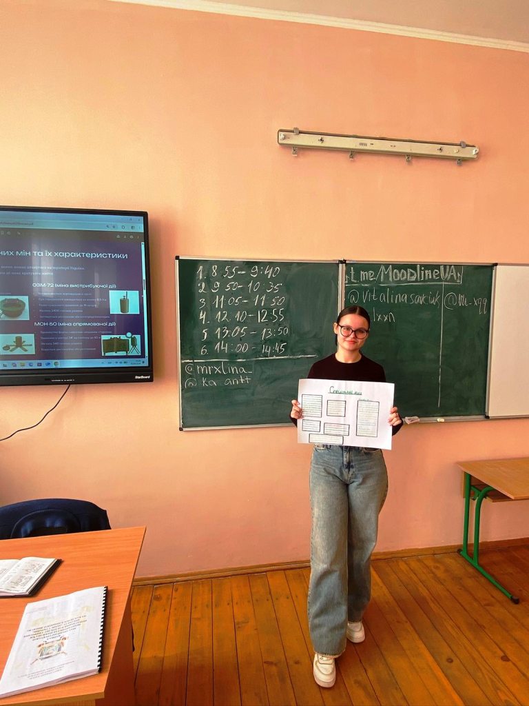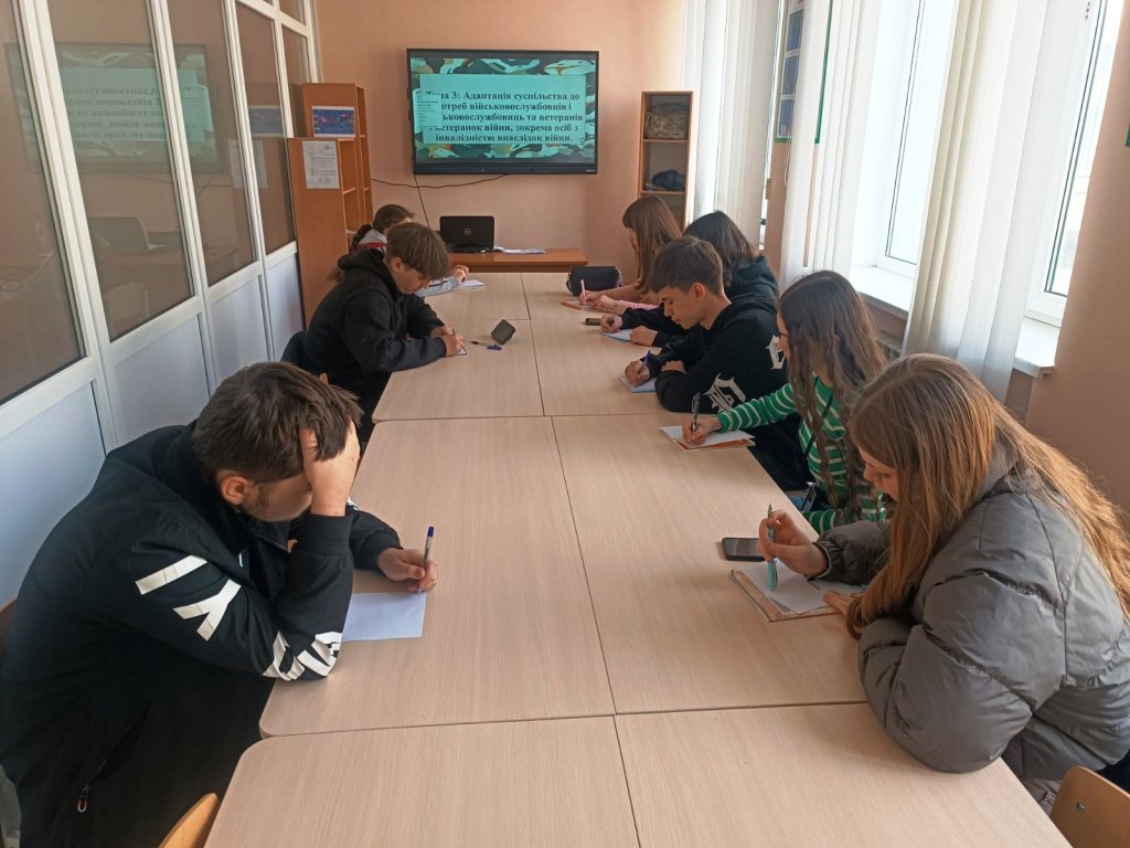 Учні, в рамках вивчення модуля «Основи національної безпеки та оборони України» дізналися про сектор безпеки і оборони, його завдання та структуру; про роль НАТО та стратегічних партнерів України у сфері безпеки. Також учні дізналися про волонтерський рух як складову підвищення спроможності сил оборони. Крім того, здобувачі освіти розмірковували про адаптацію суспільства до потреб військовослужбовців та військовослужбовець та ветеранів і ветераном війни, зокрема осіб з інвалідністю внаслідок війни.