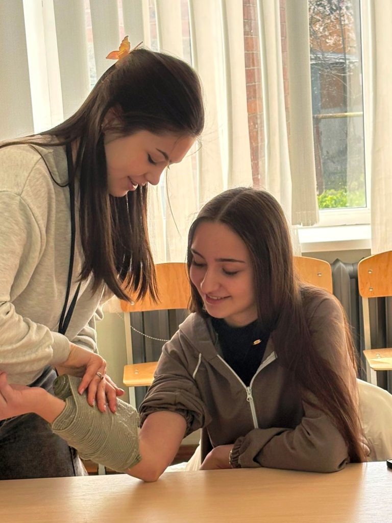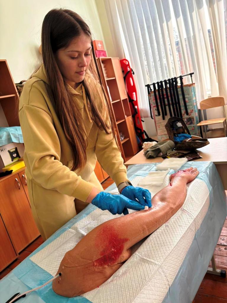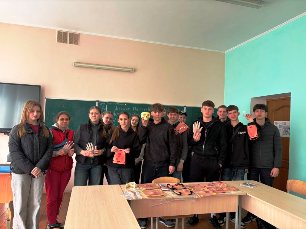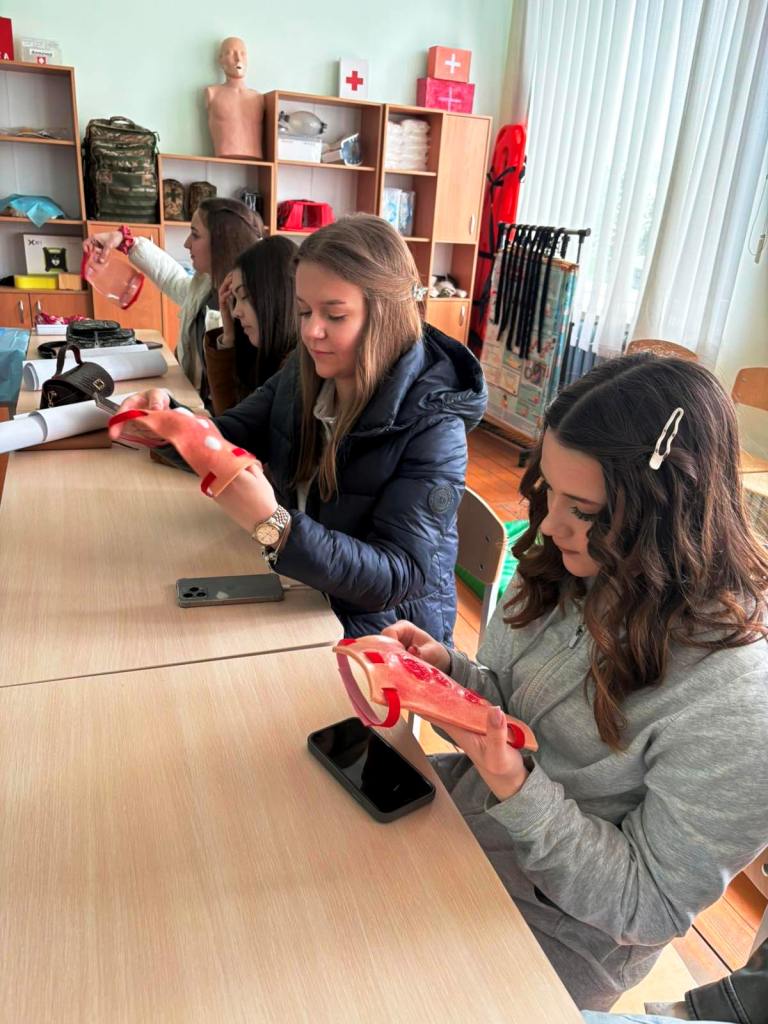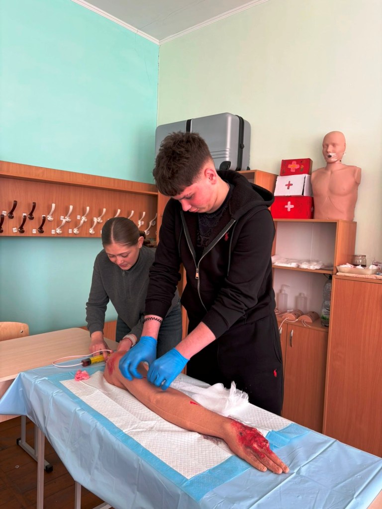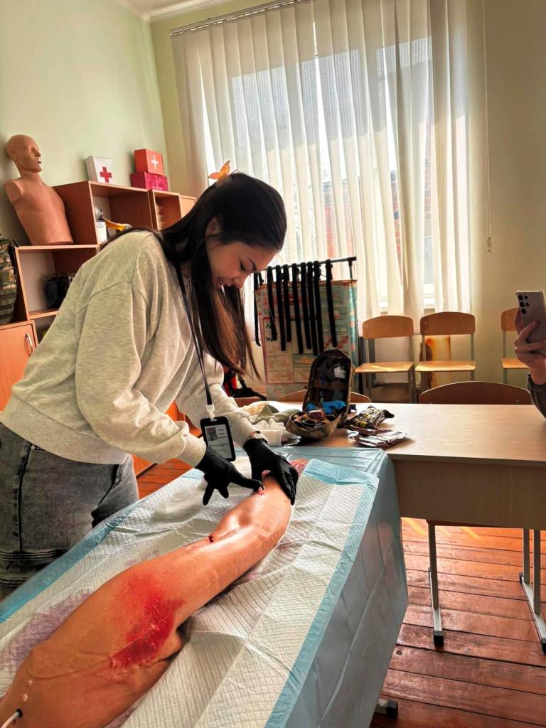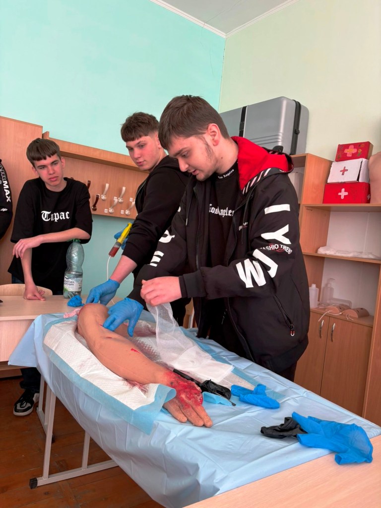 В ході модуля «Домедична допомога в умовах бою» учні ознайомлювалися із роботою турнікетів, правилами та техніками накладання турнікетів, тампонували рани, зупиняли різні види кровотеч.