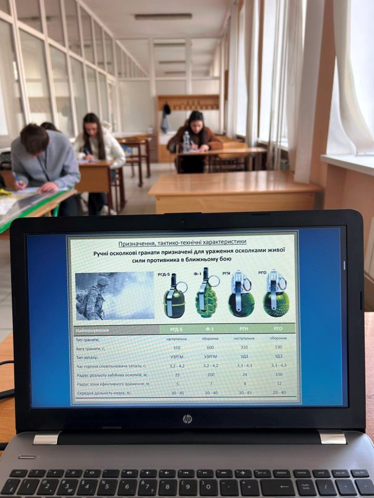 Під час вивчення модуля «Озброєння та військова техніка. Стрілецька підготовка» десятикласники вдосконалювали індивідуальні бойові навички поводження зі стрілецькою зброєю, вивчали призначення, загальну будову і класифікацію гранат різних типів, тренували навички психологічної стійкості в екстремальних ситуаціях.