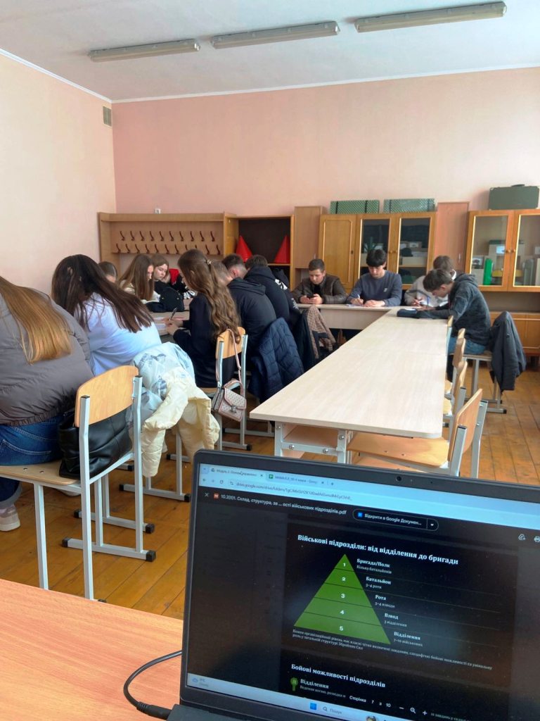 В межах вивчення модуля «Основи управління та планування» здобувачі освіти вдосконалили свої знання щодо складу, структуру та завдань Сил оборони, структури, призначення та бойових можливостей військових підрозділів.