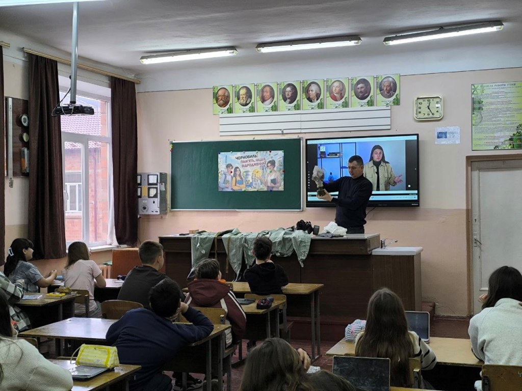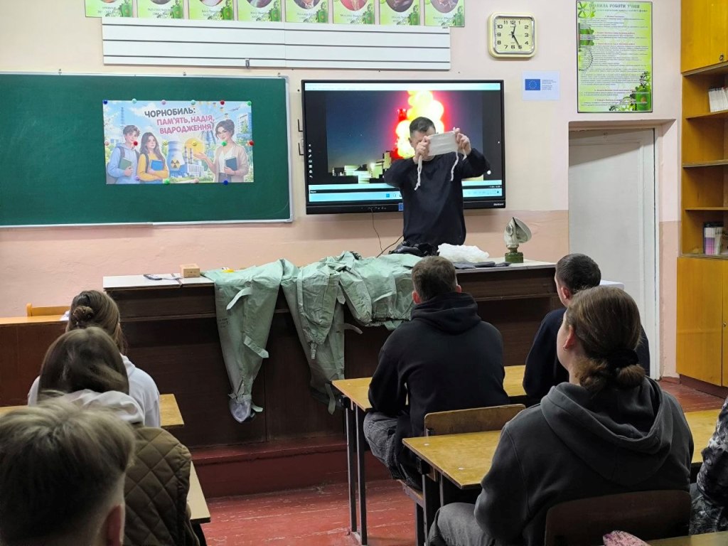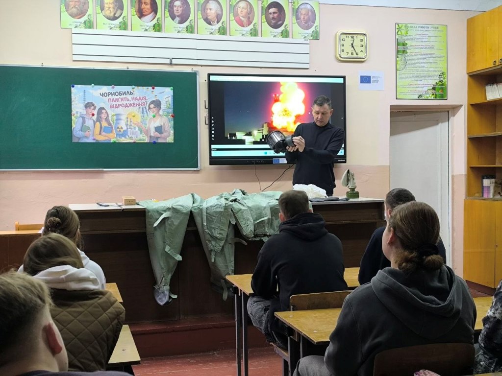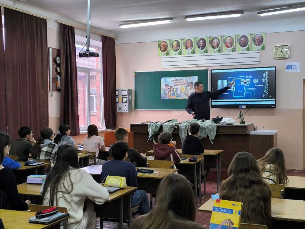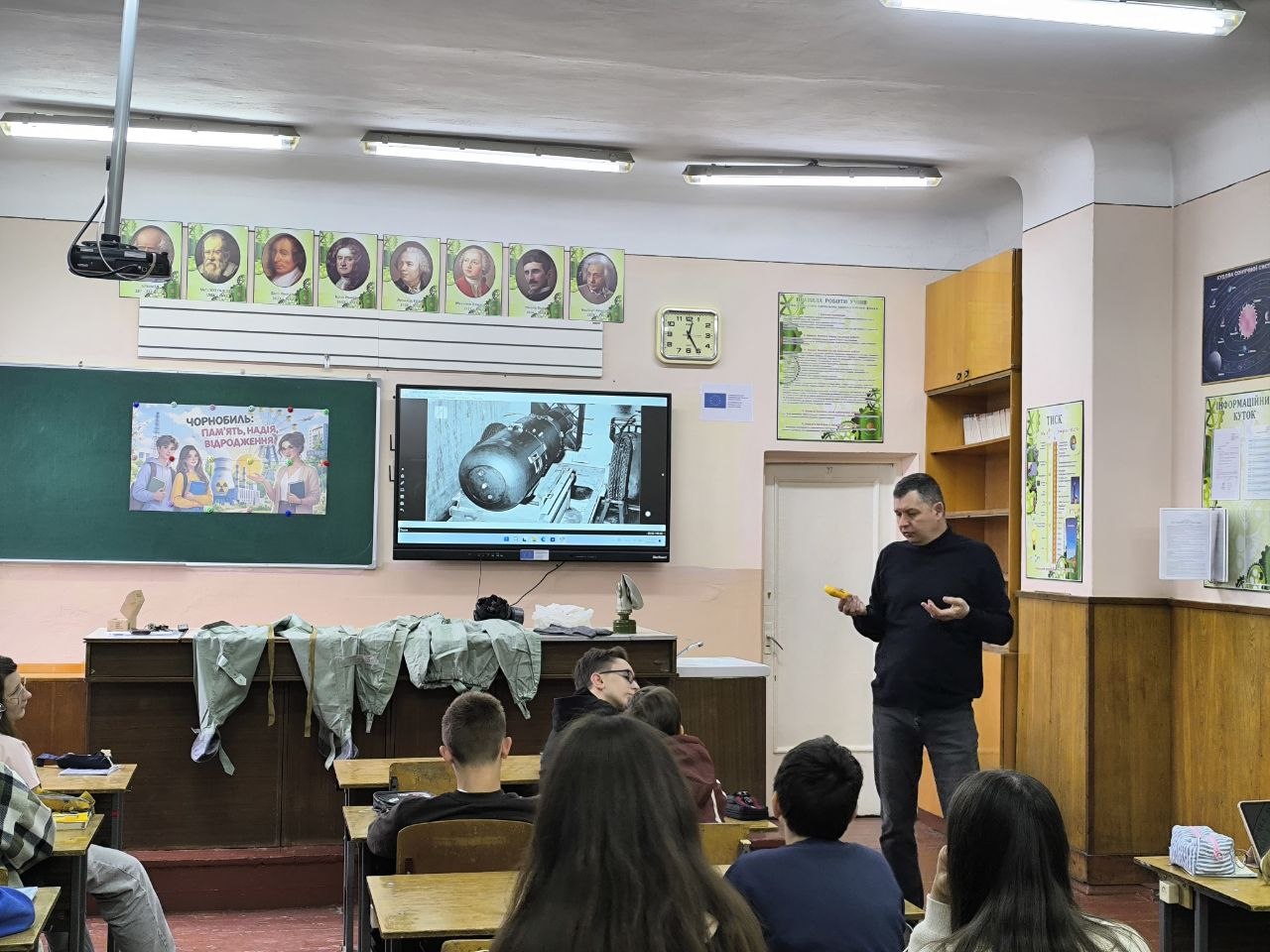 Під час заходу здобувачі освіти більше дізналися про день, що змінив світ – 26.04.1986 року, коли о 01:23 ночі четвертий енергоблок Чорнобильської АЕС вибухнув унаслідок серії критичних помилок під час планових випробувань. Допомогло їм в цьому навчальне відео, в якому завдяки 3D-моделюванню був відтворений процес роботи АЕС, алгоритм здійснення планових випробувань та їх наслідки – процес вибуху. Крім того, завдяки поясненням вчителя учні більше дізналися про принципи роботи ядерних реакторів, можливості вироблення електроенергії на АЕС, потенційні небезпеки при виробленні електроенергії на станціях такого типу.