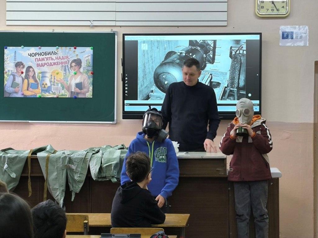 Діти більше дізналися про роль атомної енергетики в енергонезалежності України, аналізували сучасний стан Чорнобильської зони відчуження та питання радіаційної безпеки, що є вкрай актуальним на фоні сучасних викликів. Крім того, здобувачі освіти спробували власноруч використати дозиметр для вимірювання радіації в навколишньому середовщі та застосувати протигаз та ОЗК, як засоби індивідуального захисту.